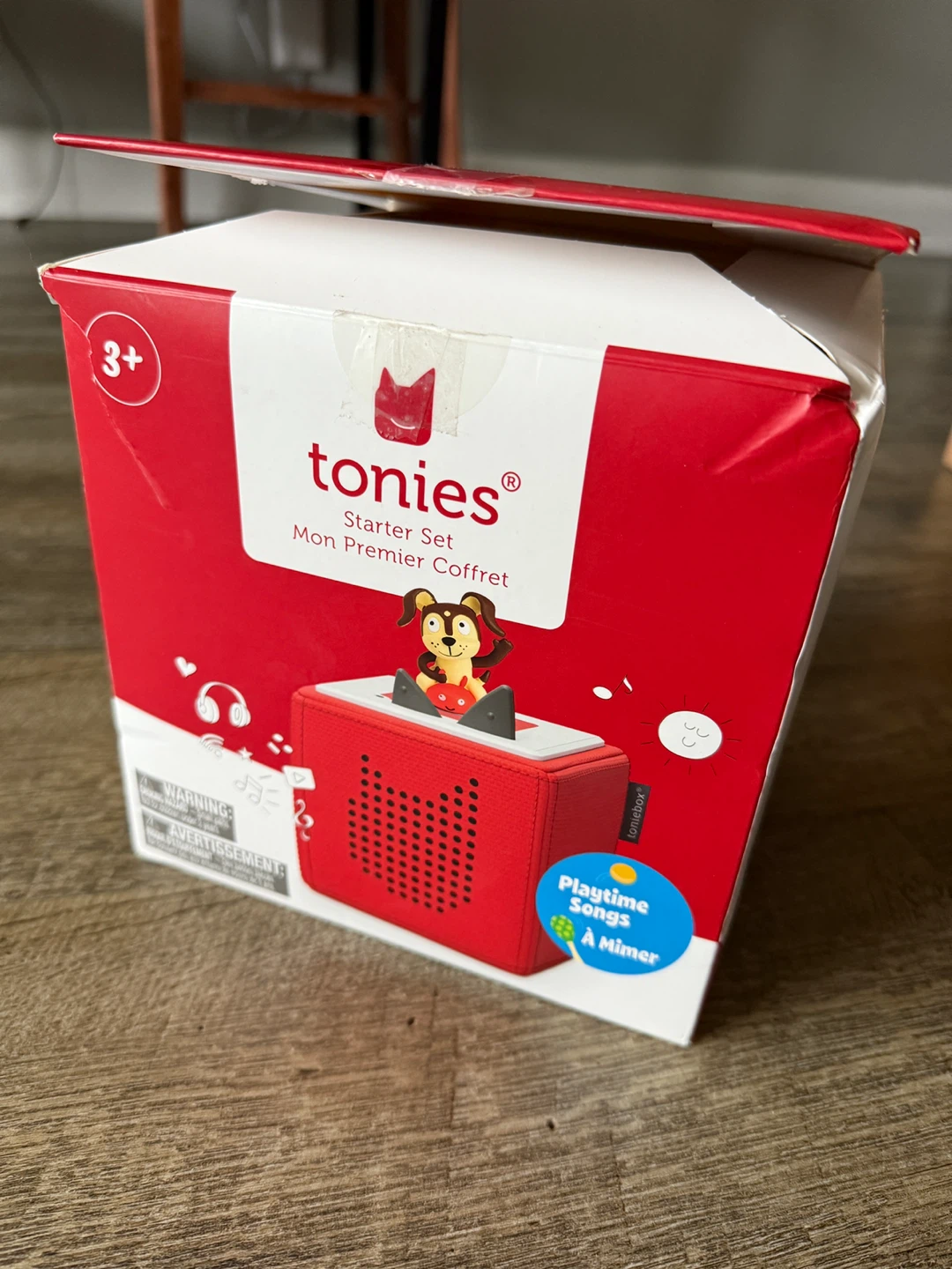 Selling a Tonies Starter Set, also known as Mon Premier Coffret! It's a great storytime friend for kids. The box includes the Toniebox, instructions, and a charging station. Recommended for children aged 3+.