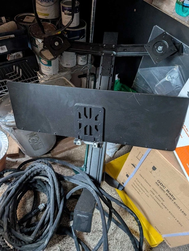 This used standing desk comes with a manual adjustment and a dual monitor mount, perfect for a productive workspace. It's in good condition and ready to enhance your work-from-home setup. Specifications: * Type: Standing Desk * Adjustment: Manual * Monitor Mount: Dual Monitor Based on Kijiji and Facebook Marketplace listings, similar used standing desks with monitor mounts are typically priced between $75 and $150. I've priced this one at a fair value, so it's ready for a new home! If the ad is up, the desk is available. Don't miss out!