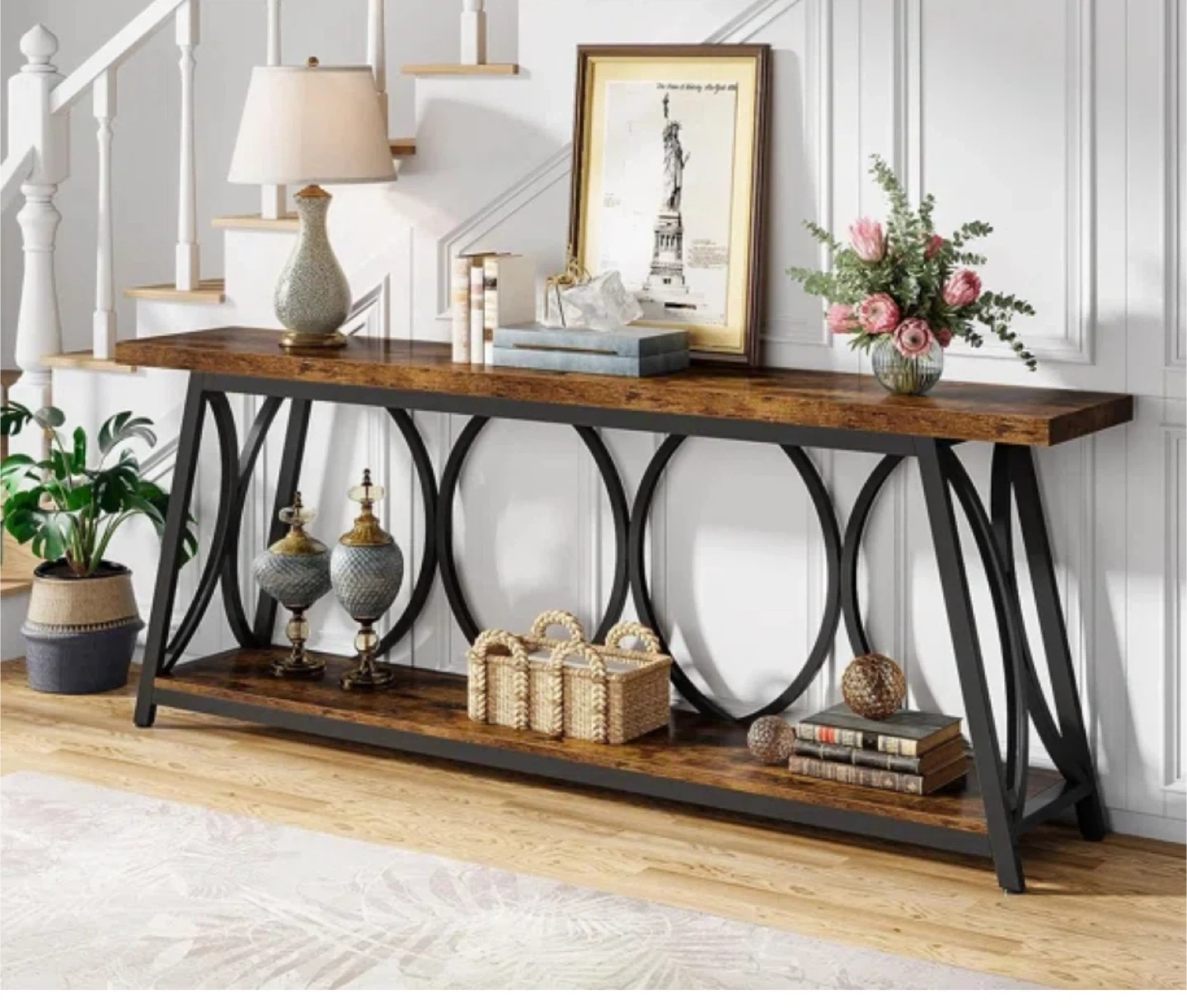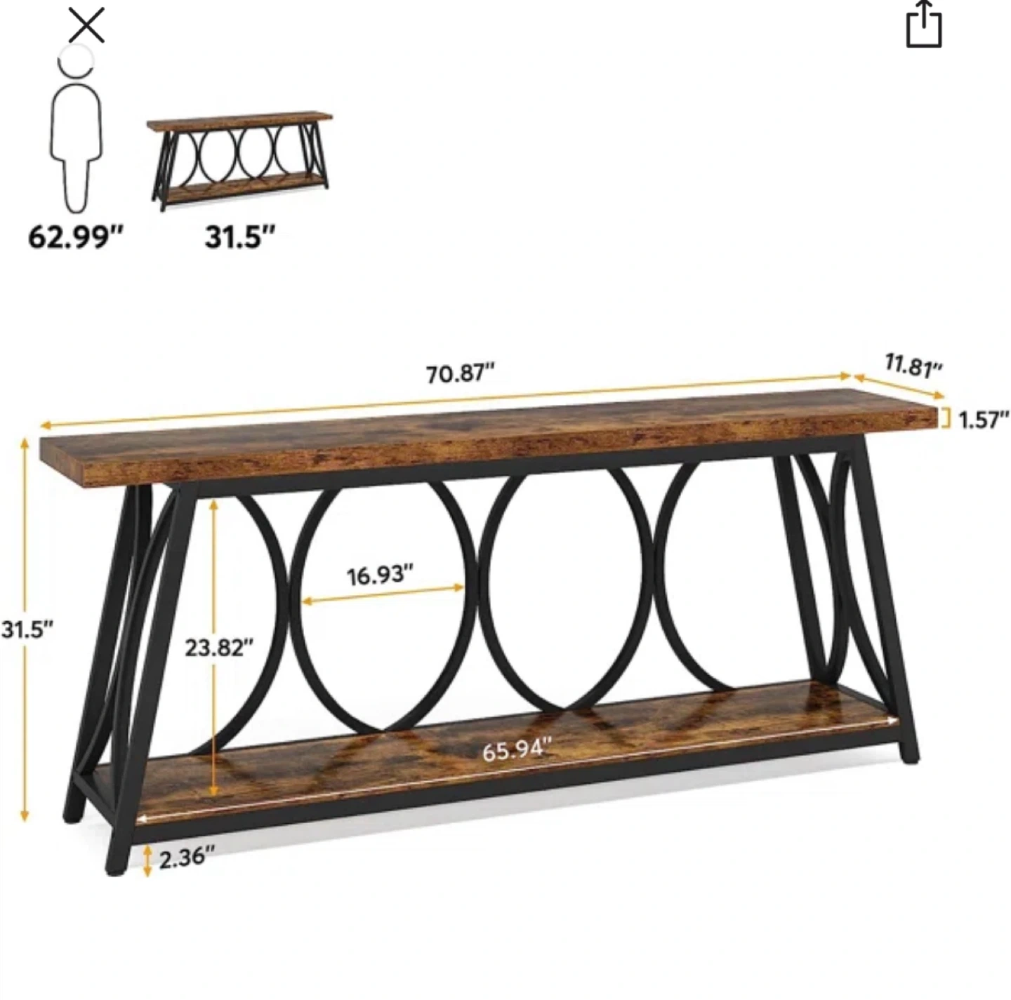 This console table features a rustic brown tabletop and a sturdy metal frame. It's perfect for adding a touch of style to your entryway or living room. (Needs assembly all pieces inside the box)