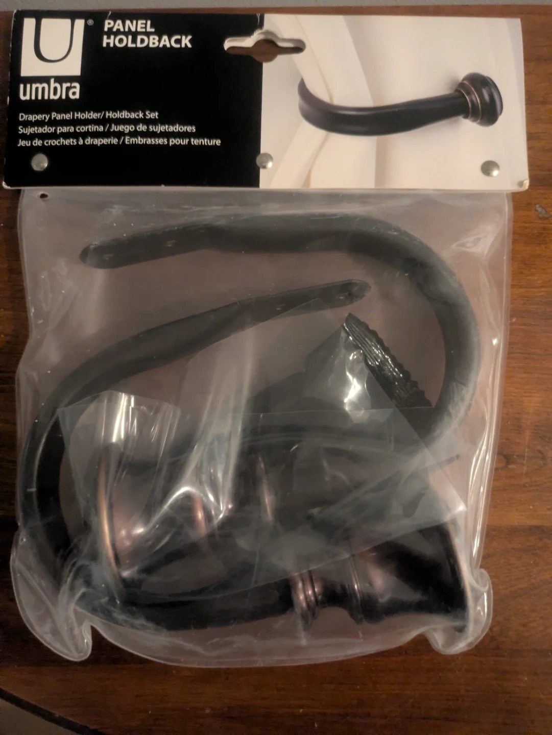Selling a brand new Umbra Panel Holdback Set! It's a drapery panel holder/holdback set still in its original packaging