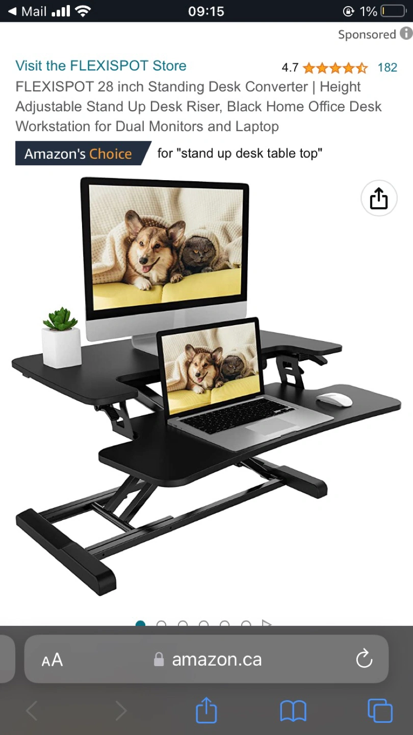 https://www.amazon.ca/FLEXISPOT-Converter-Standing-Adjustable-Keyboard/dp/B0762K7JJT/ref=sr_1_3?crid=2QTOVRDYFVPLT&keywords=desk%2Briser%2B27%22&qid=1662069477&s=electronics&sprefix=desk%2Briser%2B27%2B%2Celectronics%2C96&sr=1-3&th=1