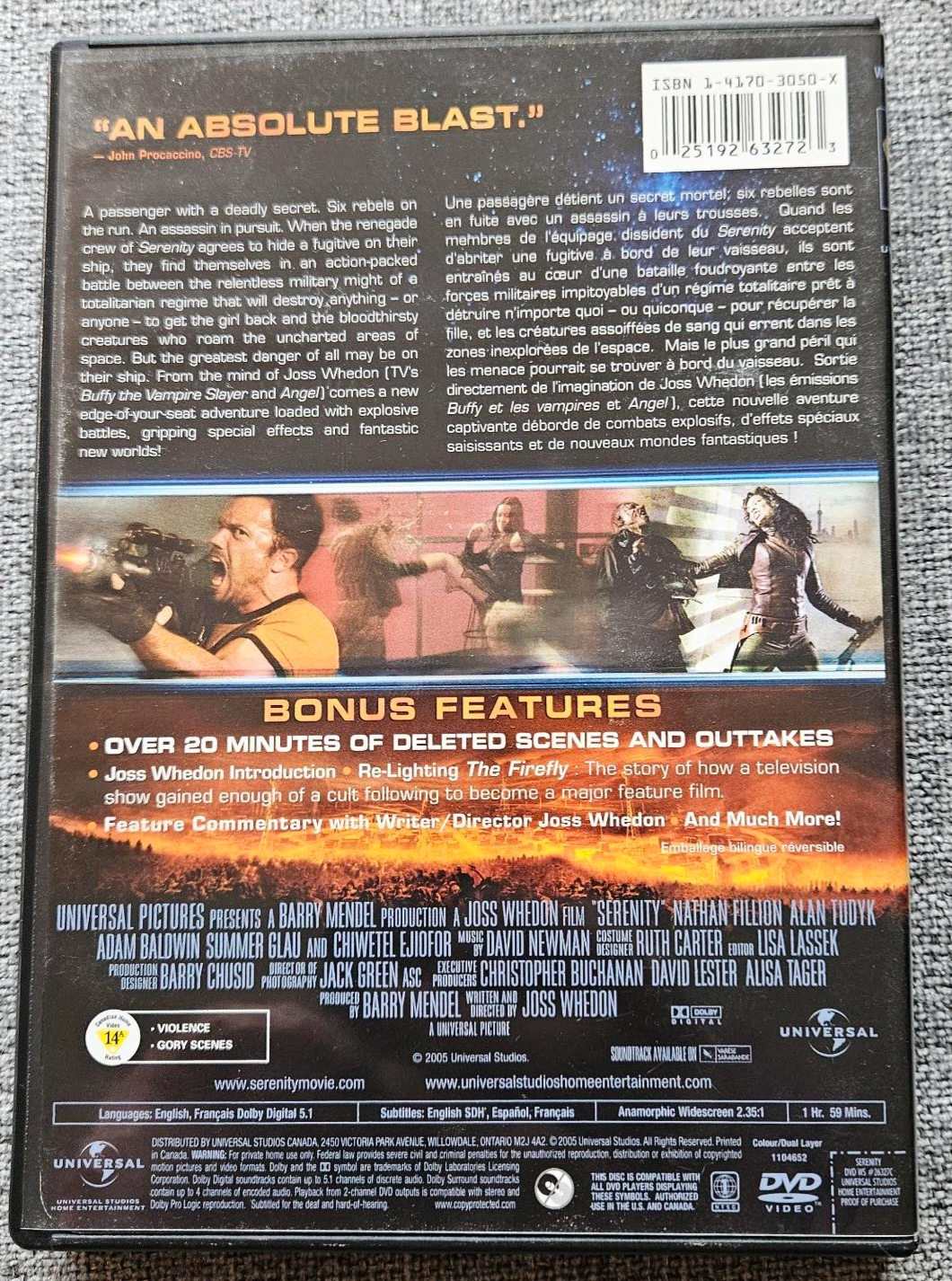 Buy & SellSerenity DVD - Widescreen EditionSerenity DVD - Widescreen Edition$4Selling the DVD of Serenity, the widescreen edition!ConditionLike newBrandUniversal0 chats·0 favorites·2 viewsSELLERJenTown Centre181 reviewWHERE TO MEETCheck Location