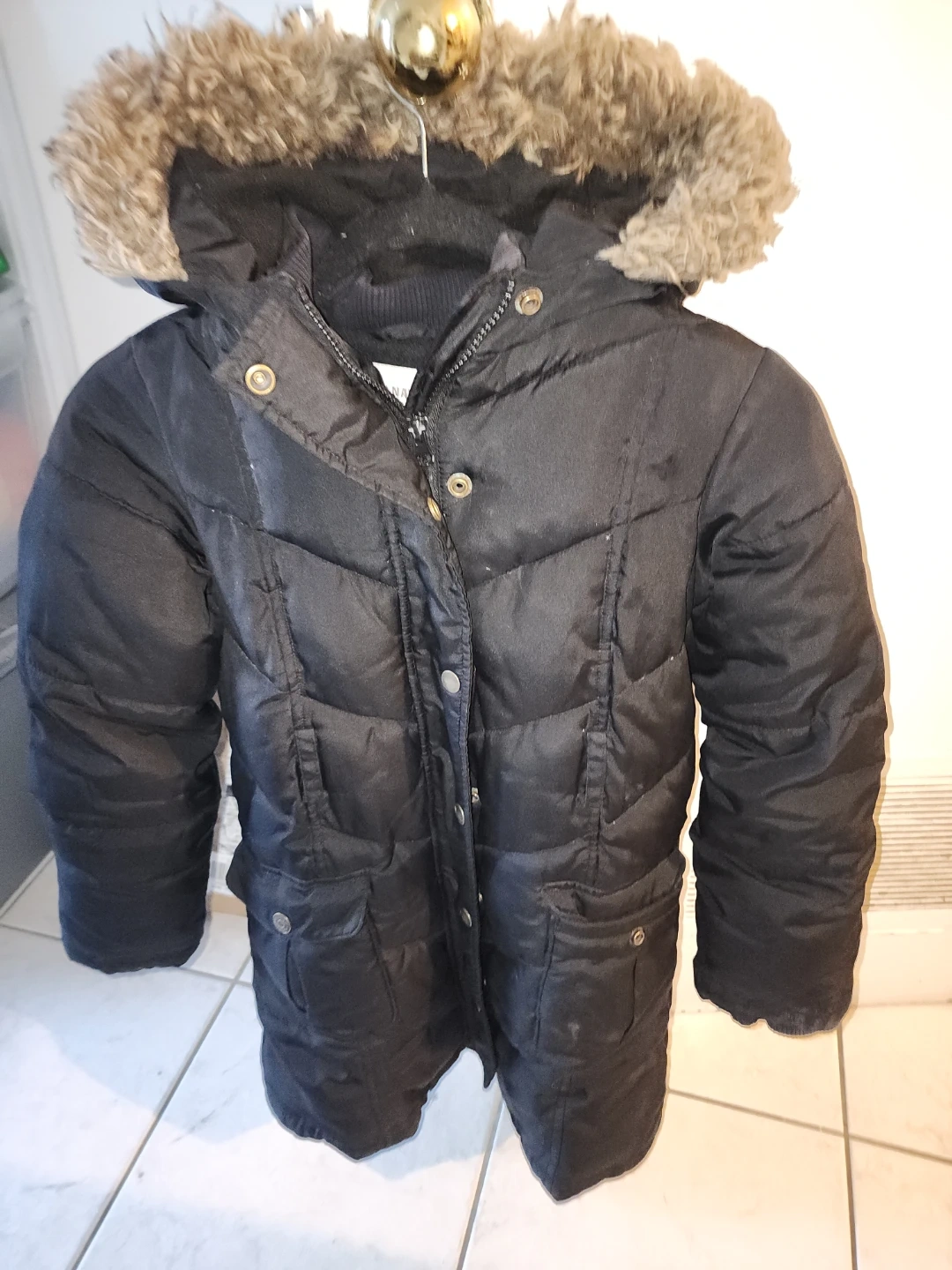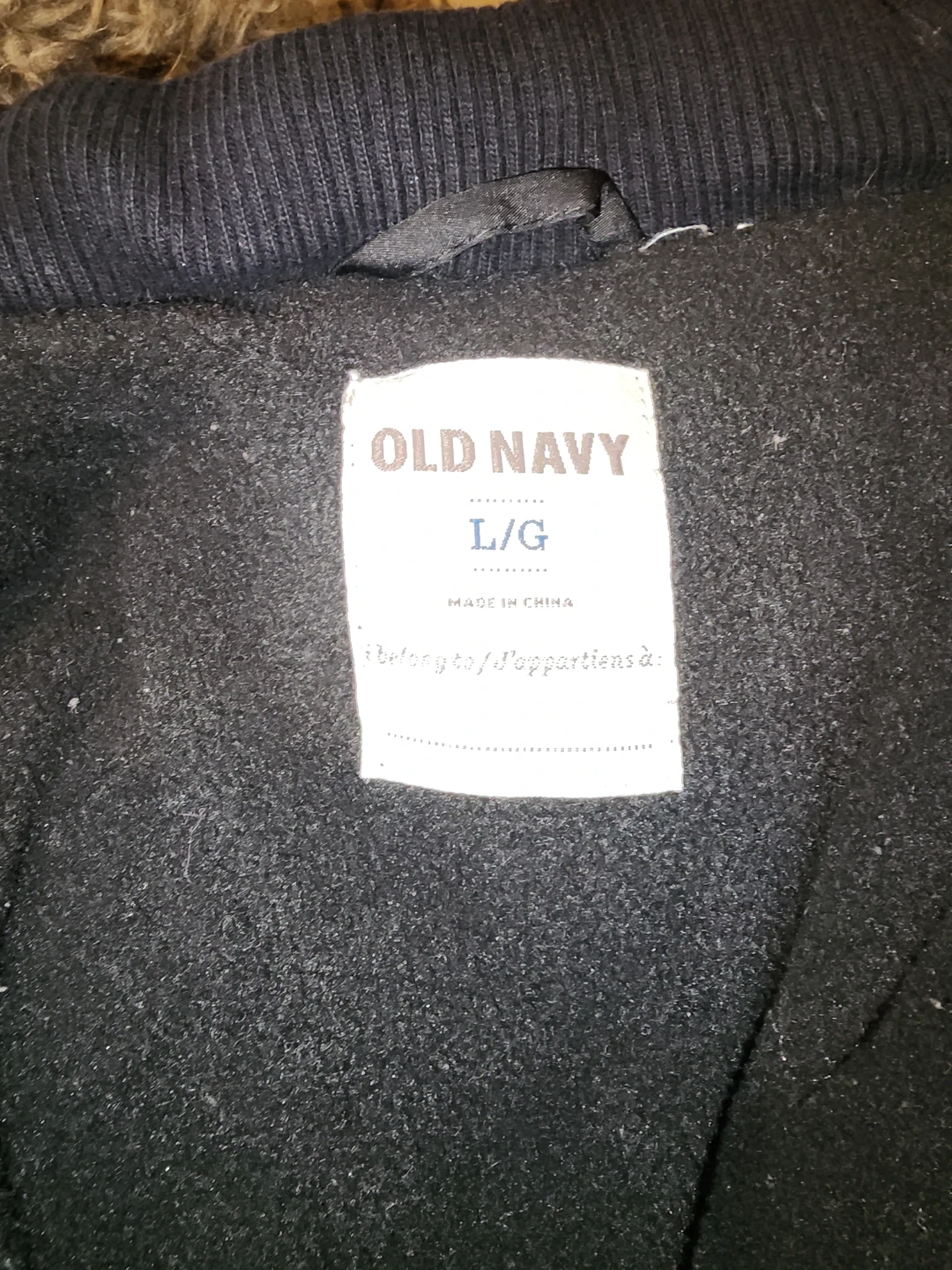 Cozy Old Navy winter coat in size large! It's black and has a faux fur trim on the hood to keep you warm and stylish during the cold months