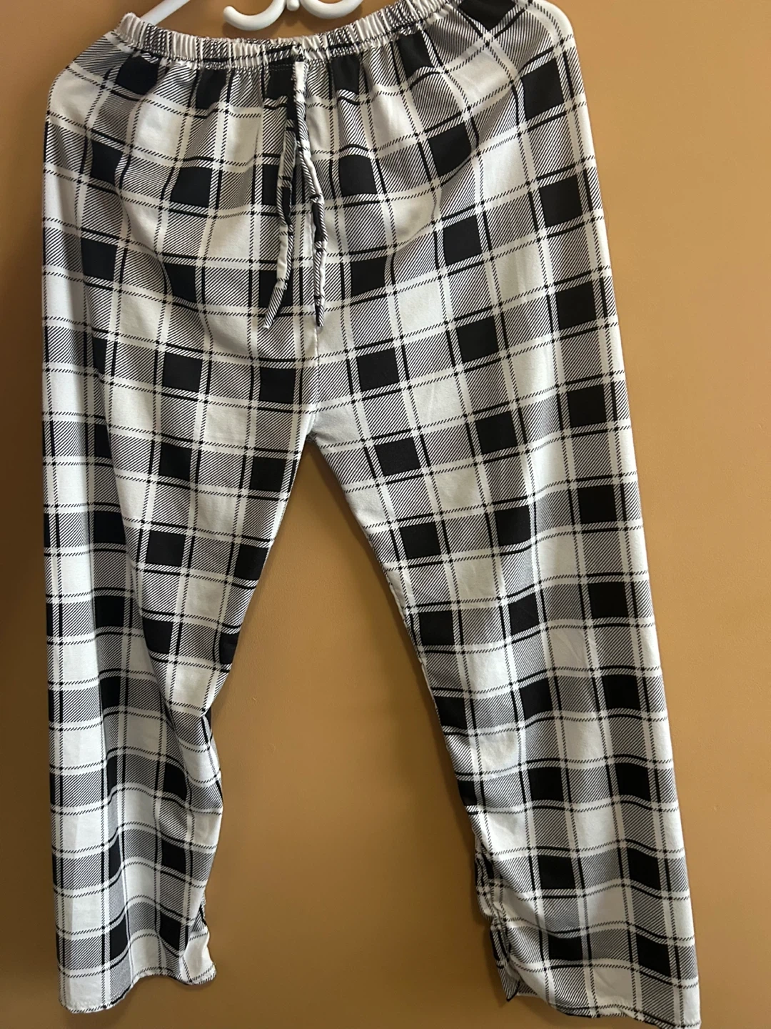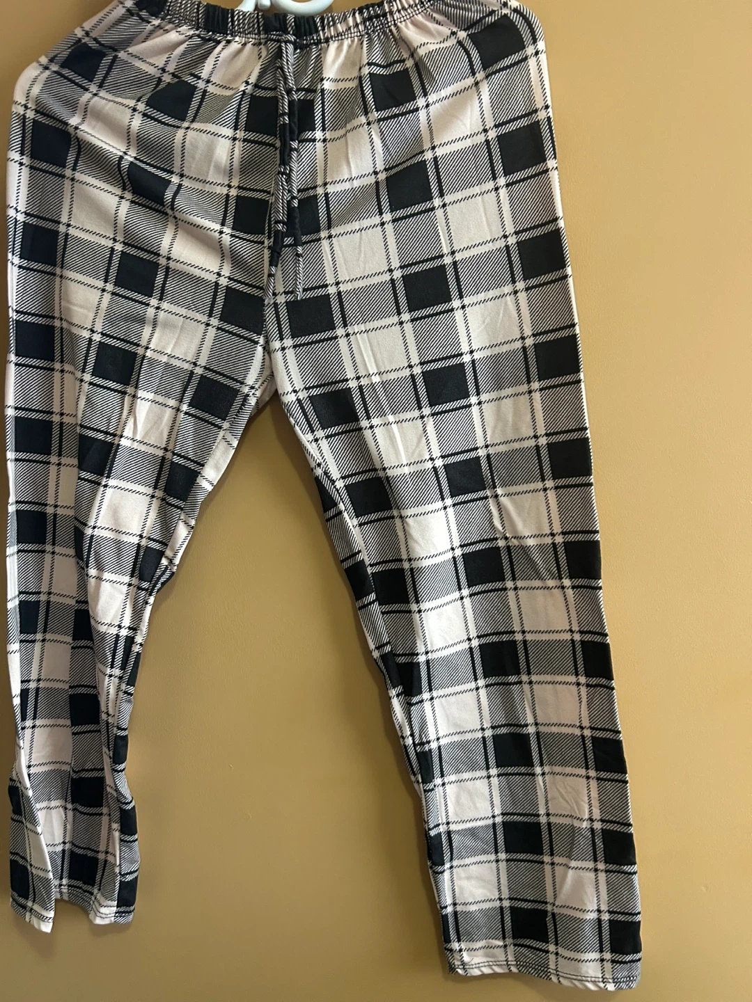 Here are some plaid pajama pants! They are black and white also pink and black and have an elastic waistband with a drawstring. They are in great condition! These are super comfortable cotton like very very soft!