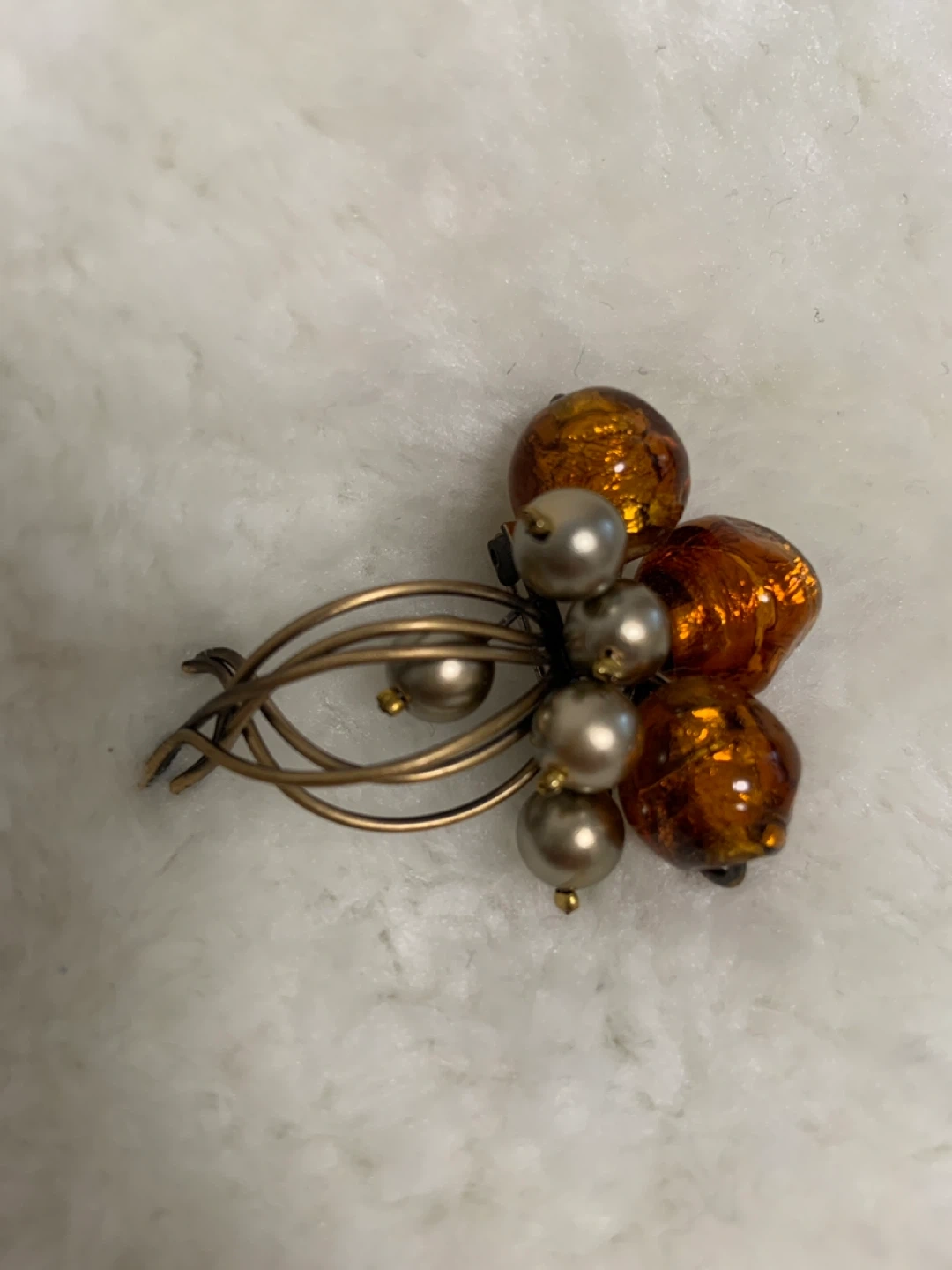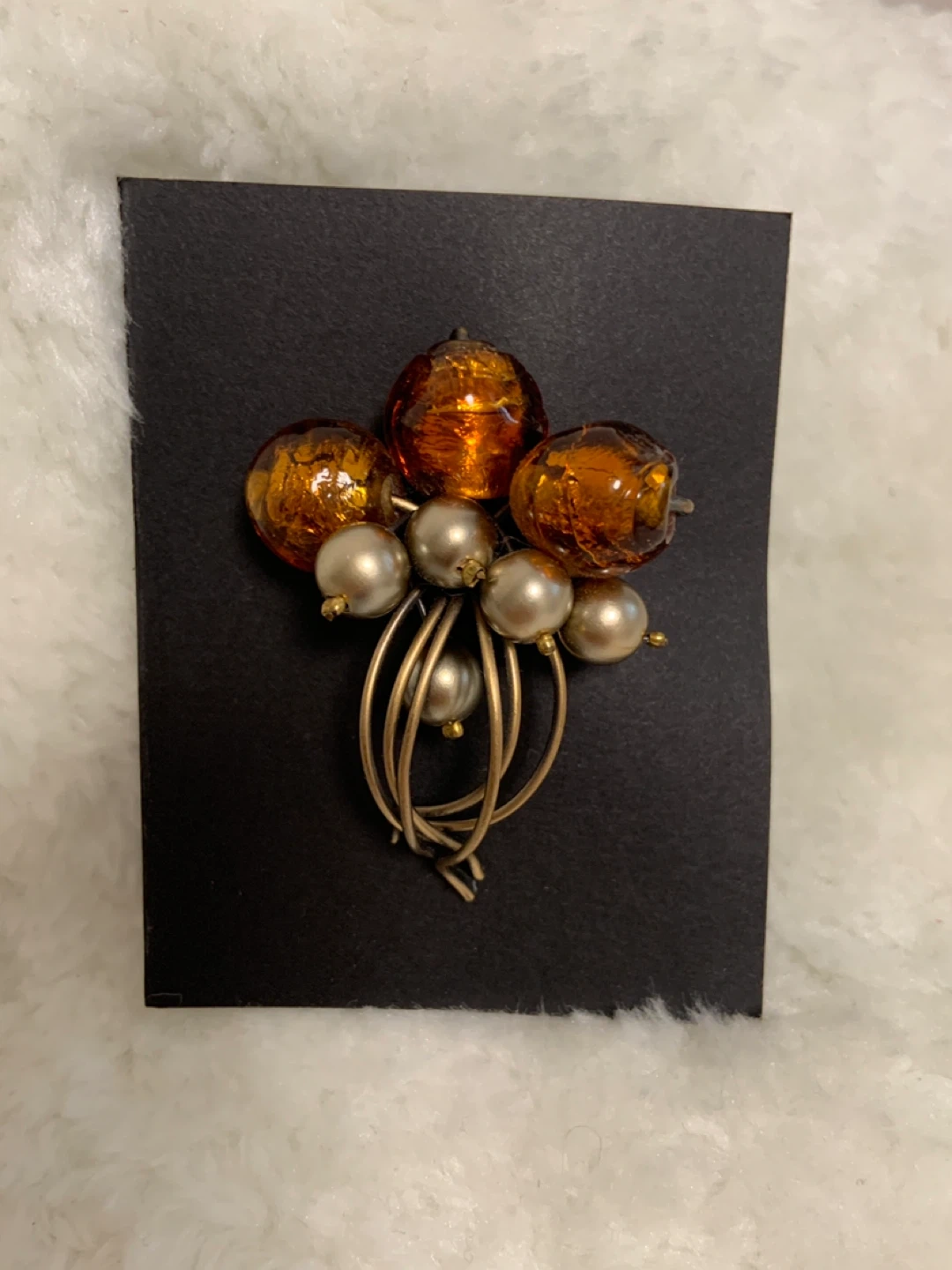 Vintage Brooch with Amber and Pearl Beads