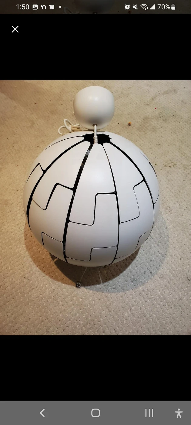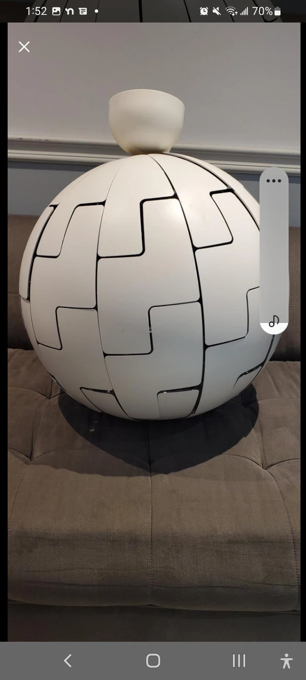 It is a beautiful piece. It expands into pieces for more light or comes together into a globe for softer light in the evening.