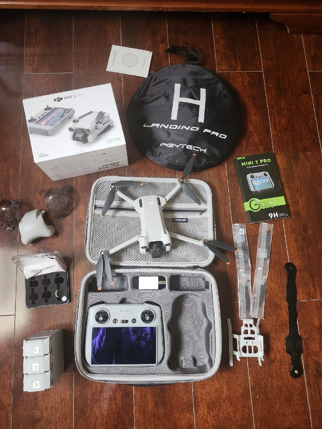 Selling a DJI Mini 3 Pro drone in great condition! It comes with a bunch of accessories, including the remote controller, extra propellers, a carrying case, and the original box. Perfect for anyone looking to get into drone photography or videography