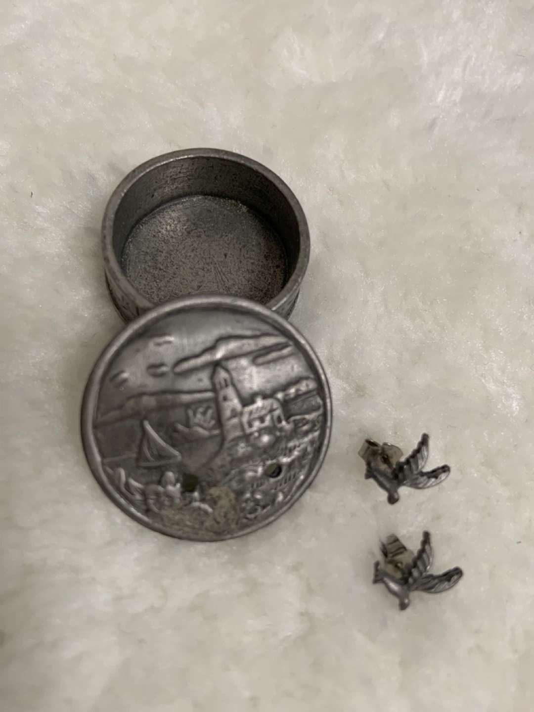 Selling a Torino necklace and earrings set. The set features a pewter-like finish and comes with a small decorative box. The necklace chain measures approximately 16 inches.