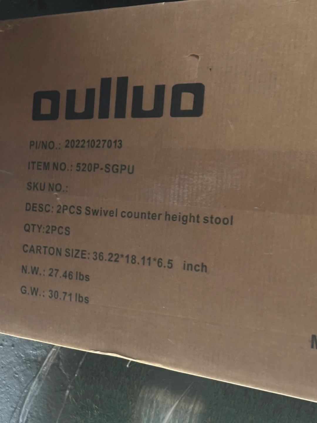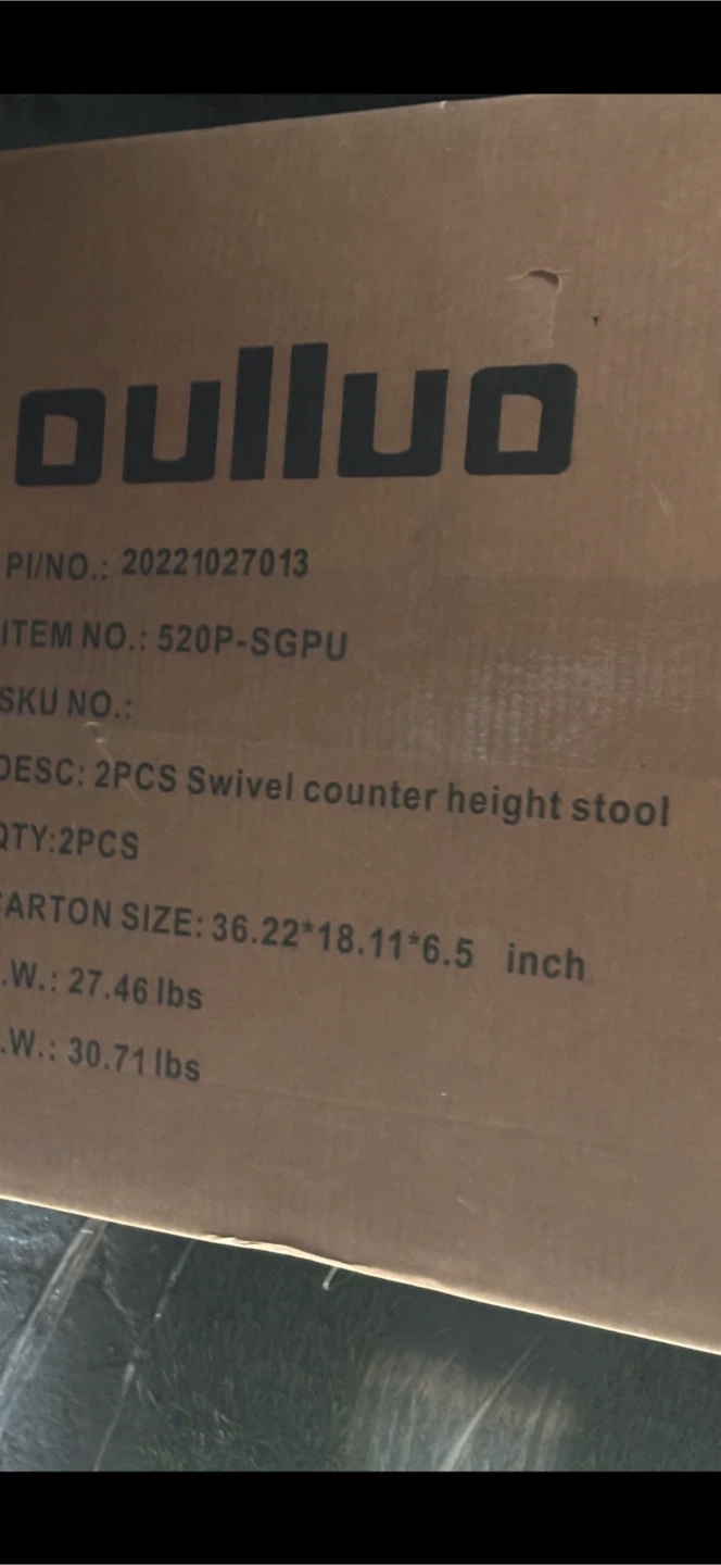 Selling a brand new OULLUO Swivel Bar Stool Set, still in its original packaging! The box indicates it includes 2 counter height stools. The carton size is 36.22 x 18.11 x 6.5 inches. Perfect for your kitchen island or bar area