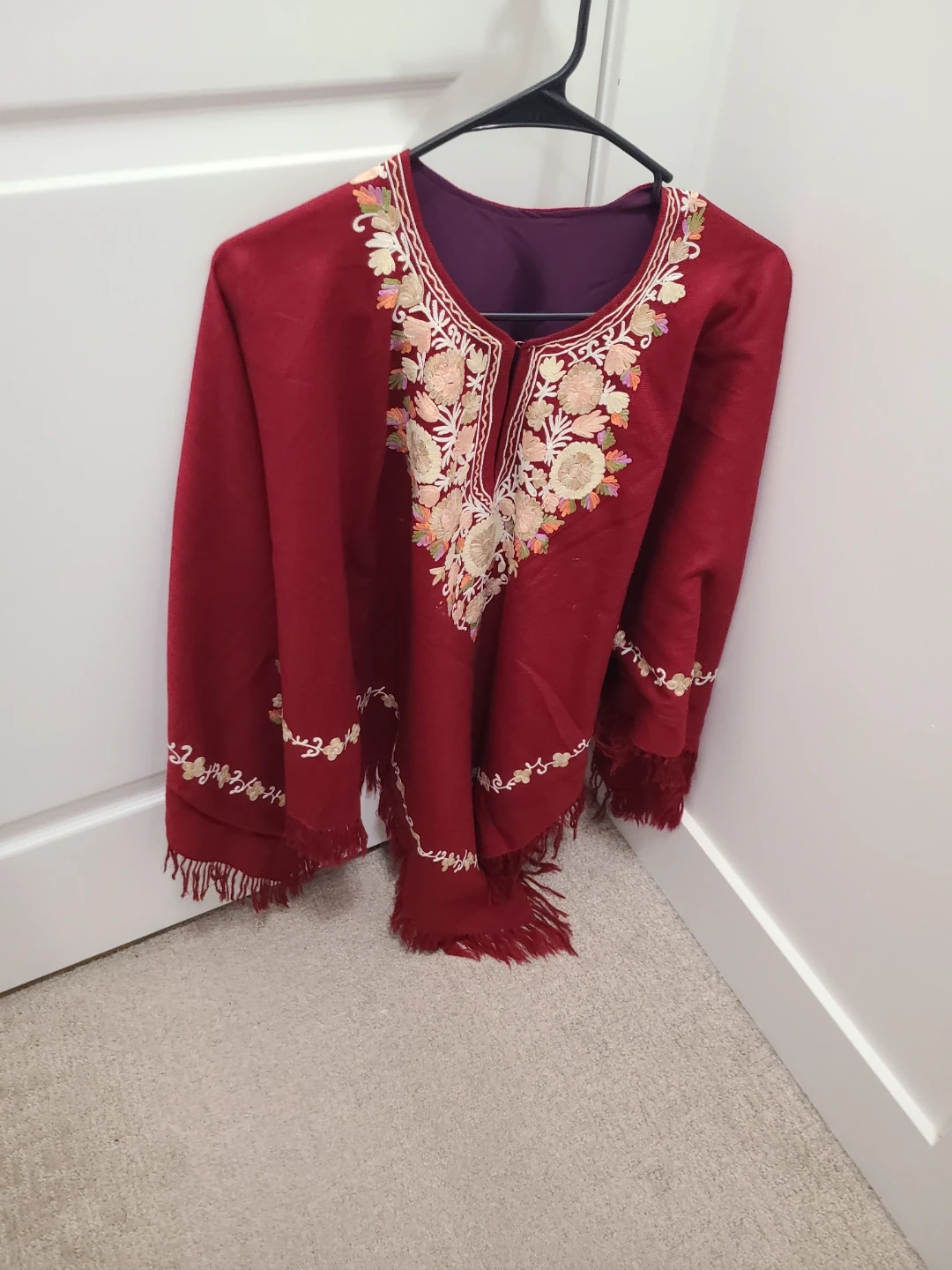 Beautiful embroidered wool shawl / Poncho