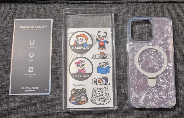 122This is a Casekoo iPhone 14 Pro Max case, designed with MagSafe compatibility and a stylish crystal clear finish. The case is in new condition and has never been used. Features: * MagSafe compatible for easy wireless charging. * Crystal Pink design to showcase your iPhone. * Durable construction for enhanced protection. * Includes original packaging and stickers. Why not give your phone the royal treatment it deserves? P.S. If the ad is still up, it's still available! Pickup in Brampton near Sheridan college Davis campus
