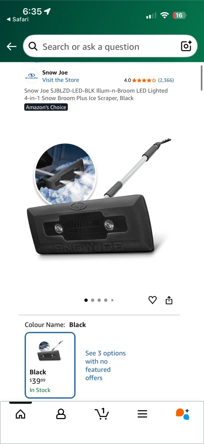 Selling a Snow Joe Illum-n-Broom LED Lighted 4-in-1 Snow Broom Plus Ice Scraper. It's black and extends up to 52 inches! Safe on cars and comes in the original box.