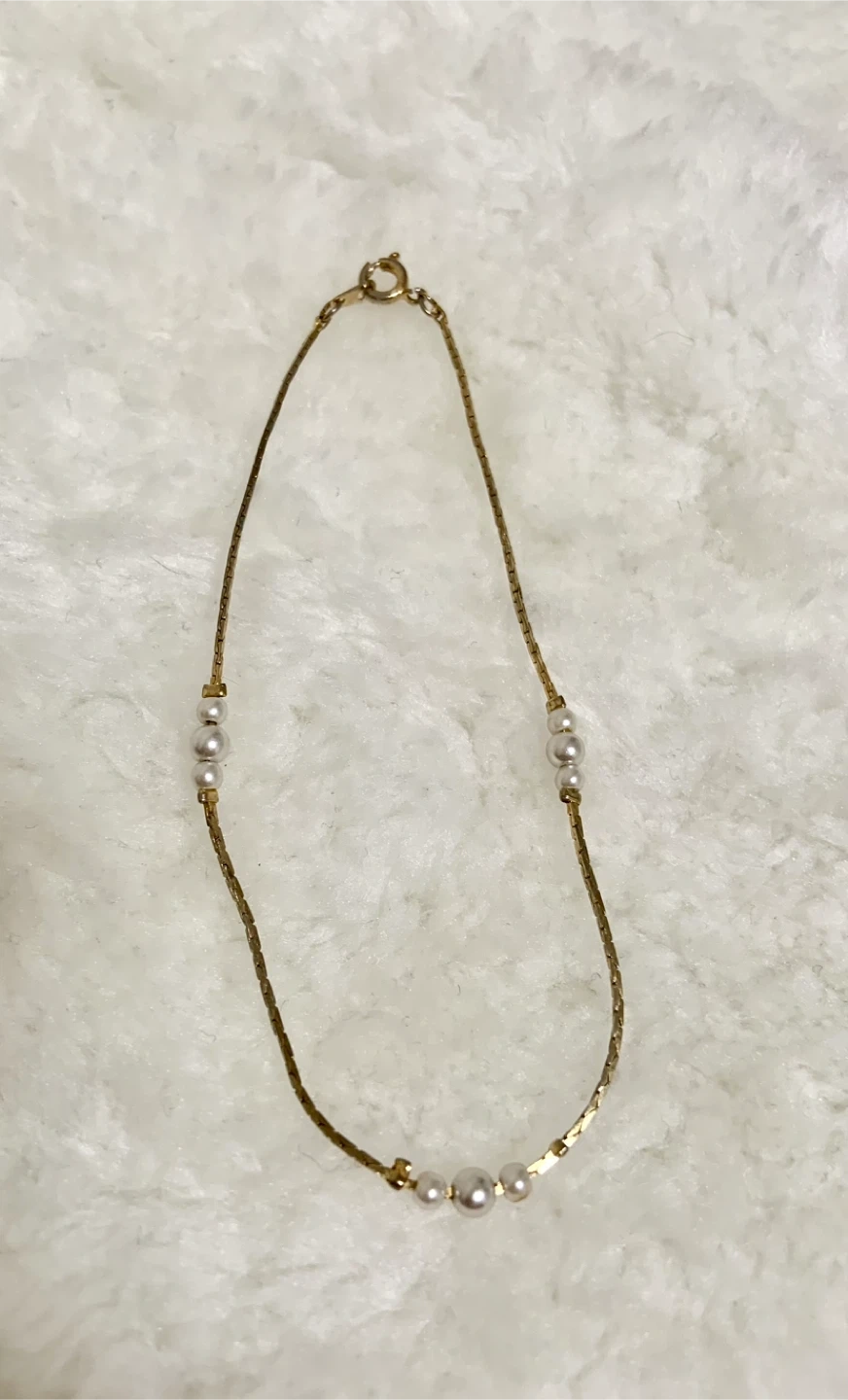 Selling a cute gold anklet with pearl accents! It measures about 9 inches in length. Perfect for adding a little something extra to your holiday outfit!