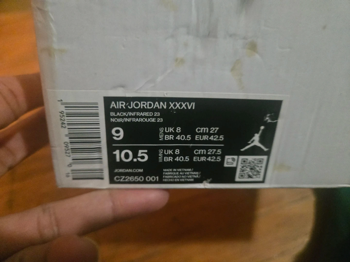 Buy & SellAir Jordan XXXVI Black/Infrared, Size 9Air Jordan XXXVI Black/Infrared, Size 9$44Selling a pair of Air Jordan XXXVI in black and infrared. They are size 9. Comes with the original box This is a used shoes ConditionGoodSize9BrandAir Jordan2 chats·0 favorites·38 viewsSELLERSHBendale151 reviewWHERE TO MEETCheck Location