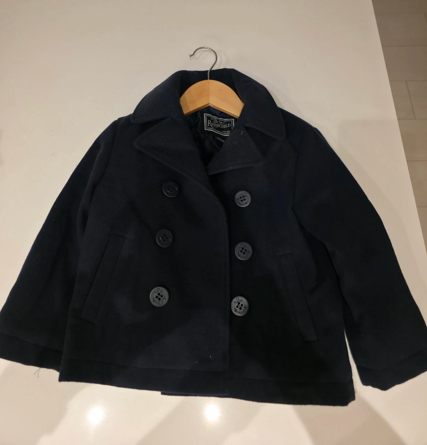 Selling a Rothschild pea coat in size 3T! It's in great condition and perfect for keeping your little one warm during the colder months. The coat features a classic double-breasted design and a quilted lining for extra comfort.