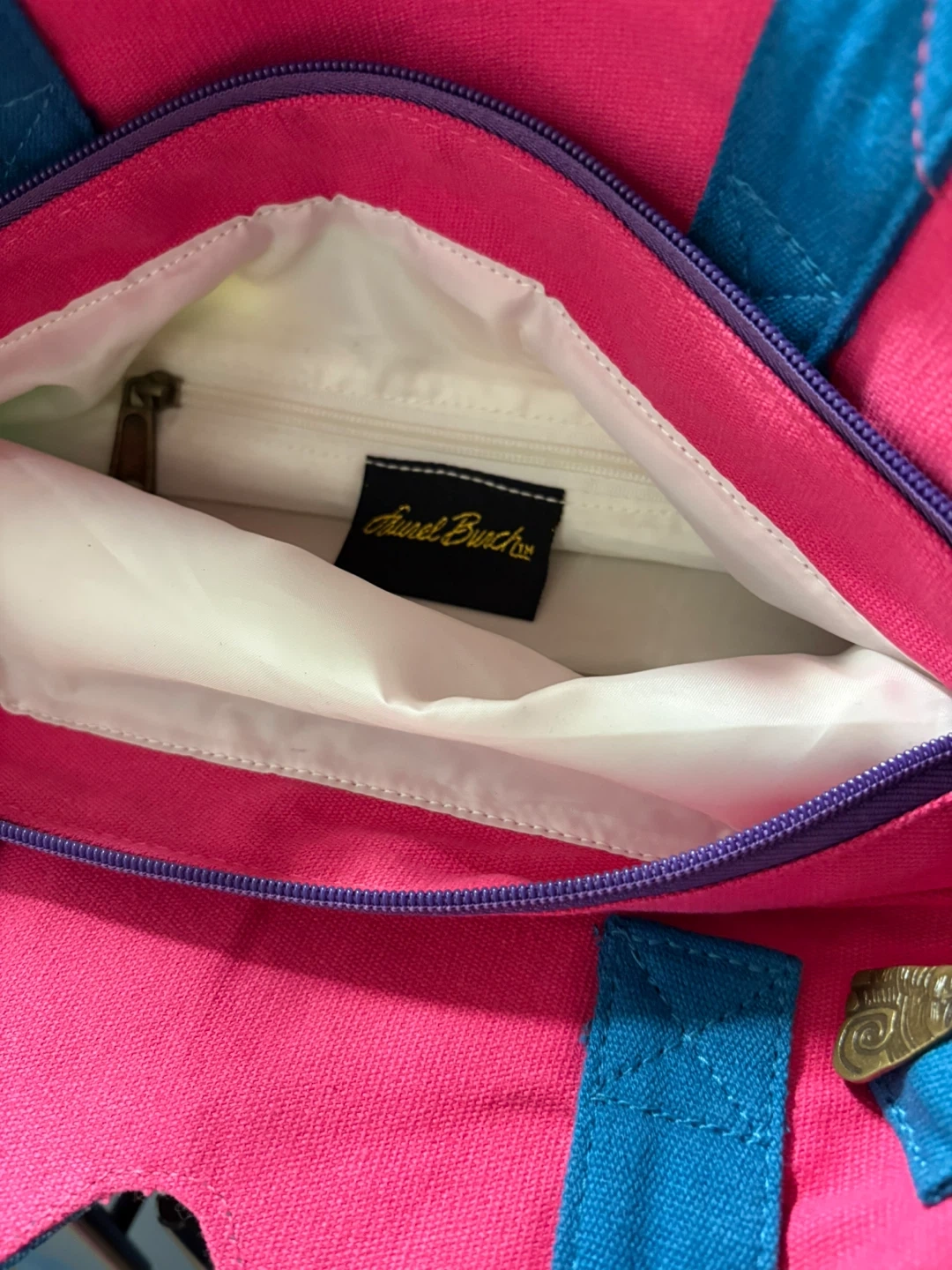 This is a Laurel Burch tote bag featuring a colourful cats design! It's in great new condition with tags, and ready for that special family member or friend that loves cats! The bag has a unique and vibrant style, perfect for adding a pop of colour to your day! Pick up in Chestermere.