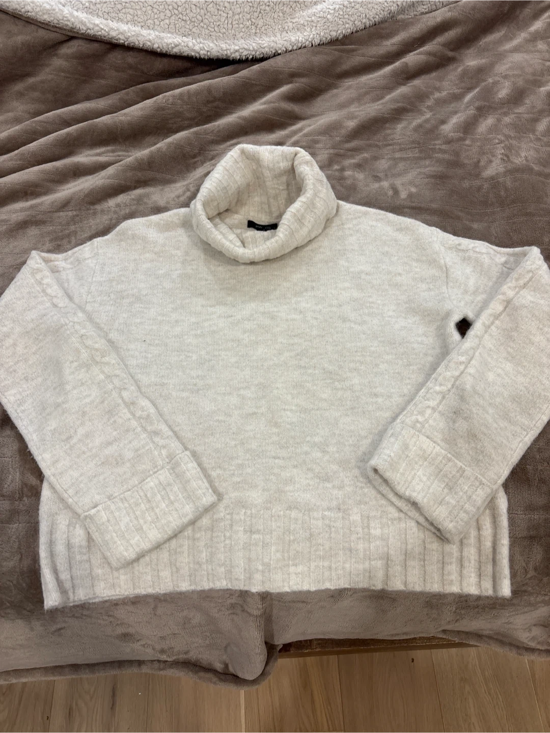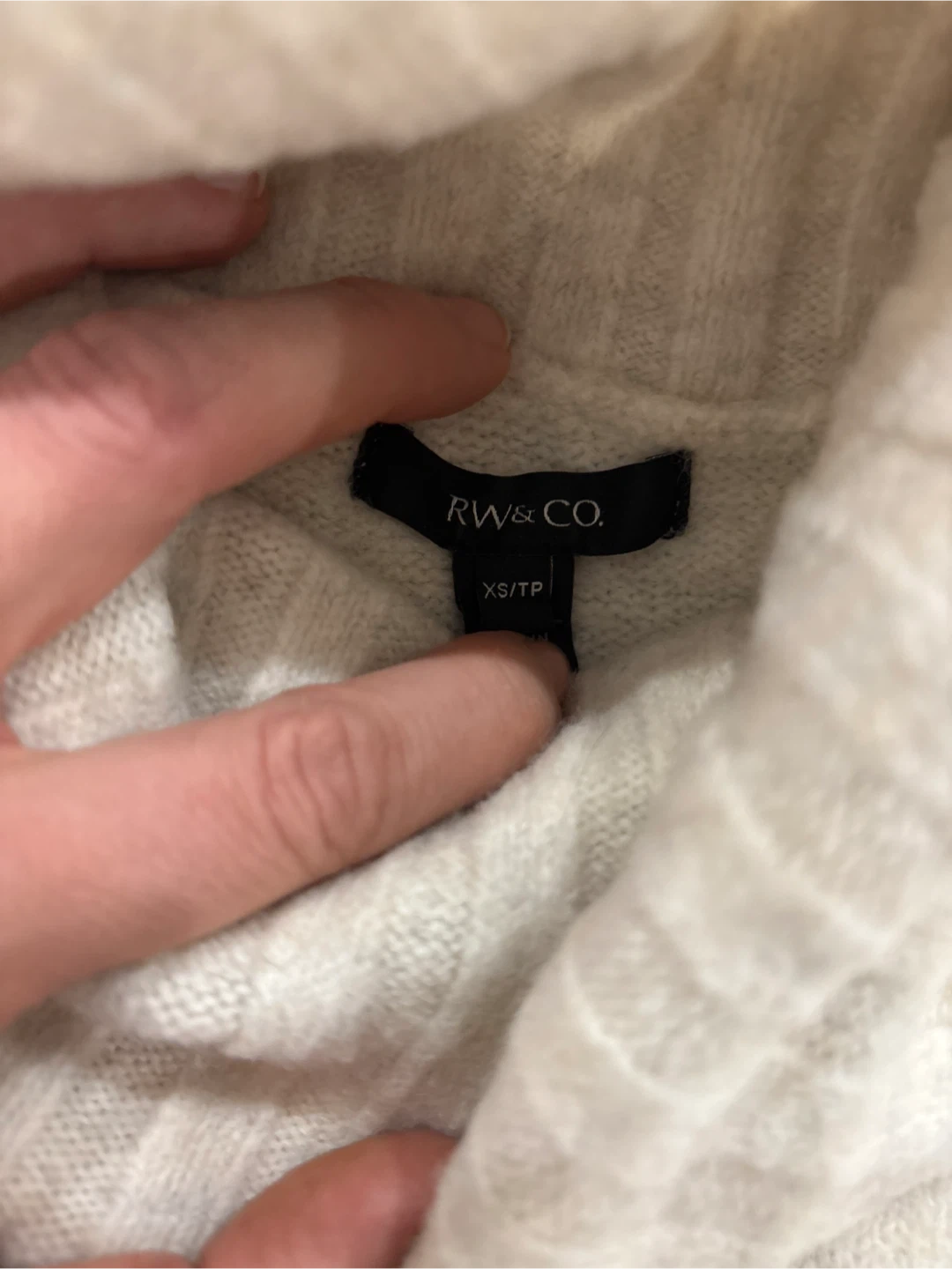 Cozy knit turtleneck sweater from RW&CO. in a lovely cream colour. It's a size XS/TP. Great for cooler weather!