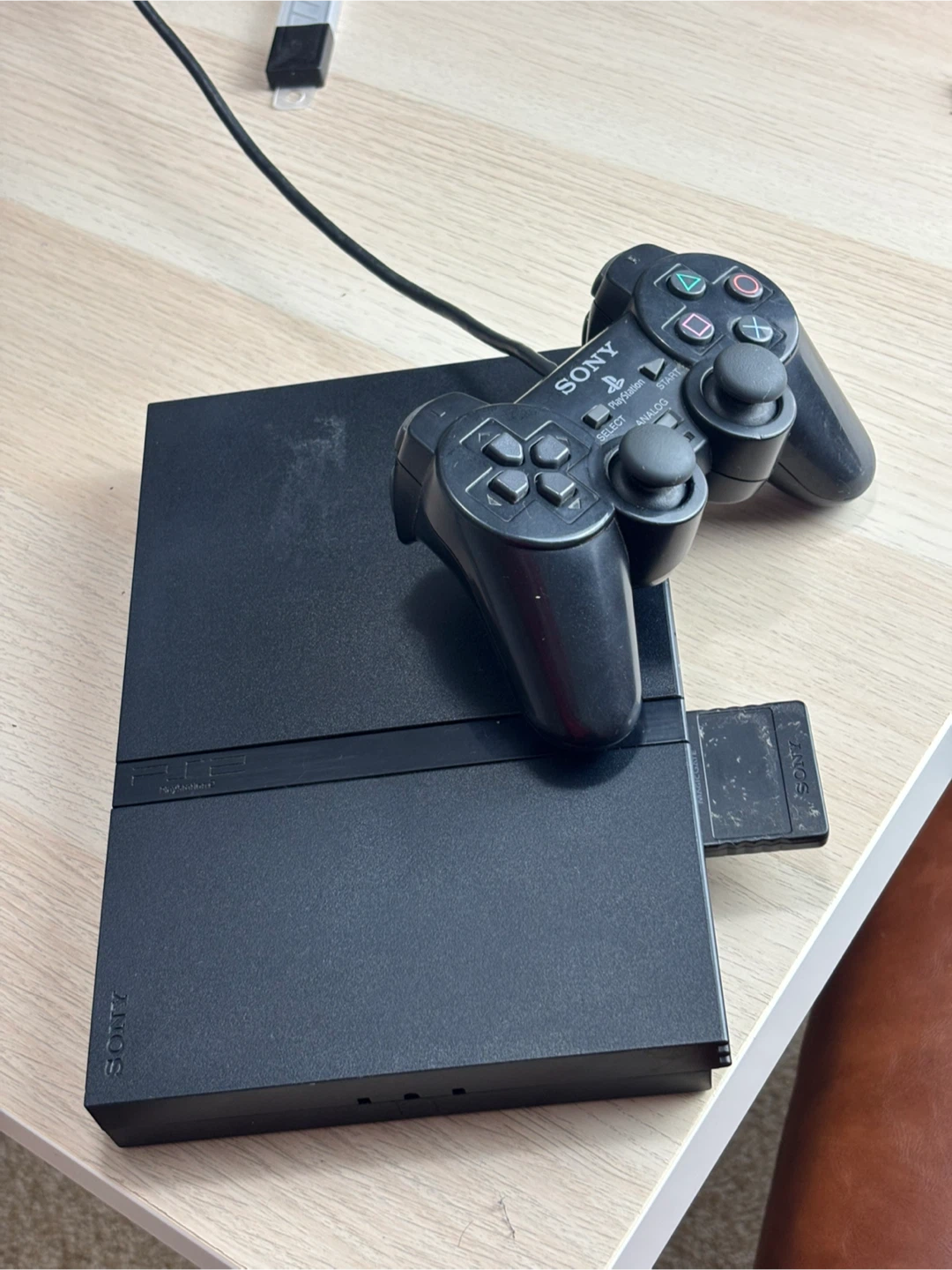 Selling a used Sony PlayStation 2 console. It comes with one controller and an 8MB memory card and all the cables. Perfect for reliving some classic gaming moments!