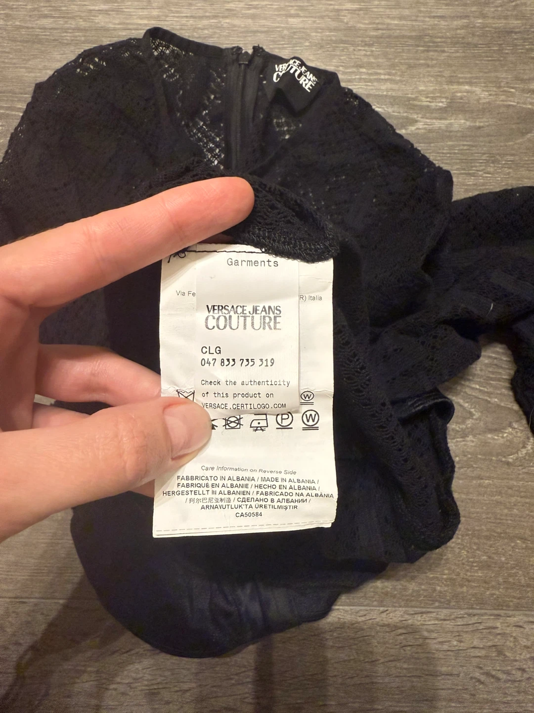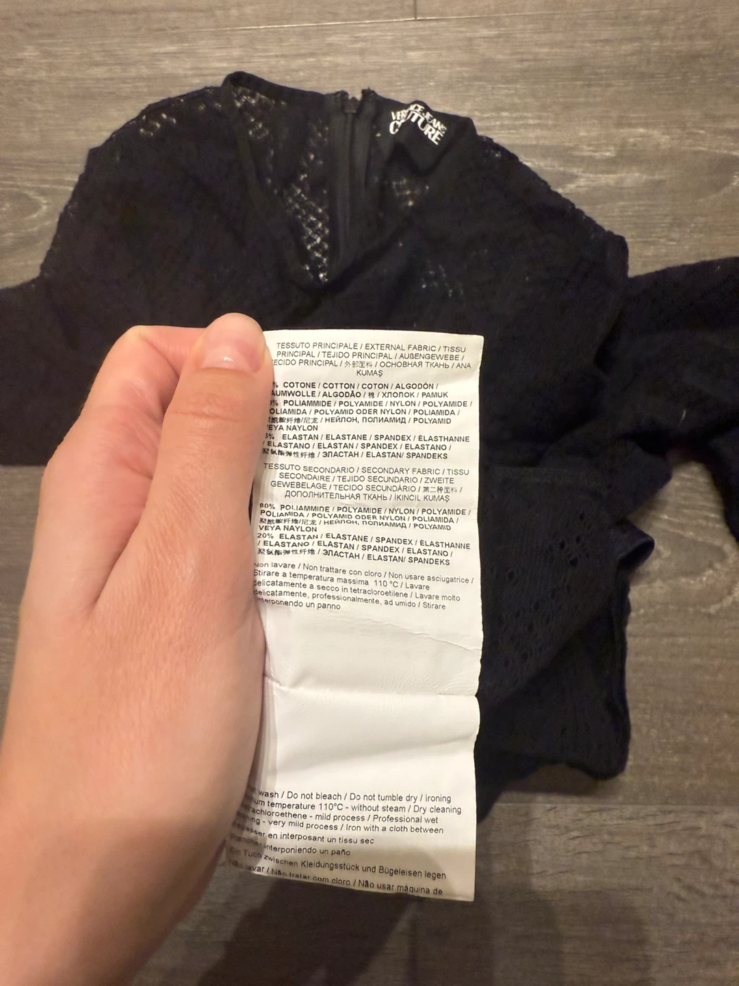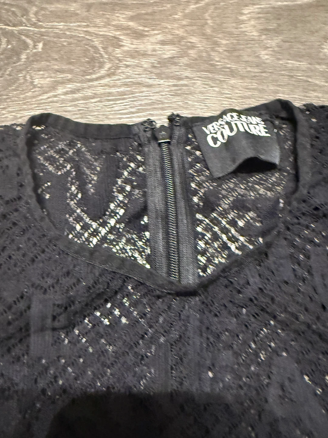 Authentic Versace Jeans Couture bodysuit in size 6. Italian size 42. It features a beautiful black lace design. Perfect for a night out!