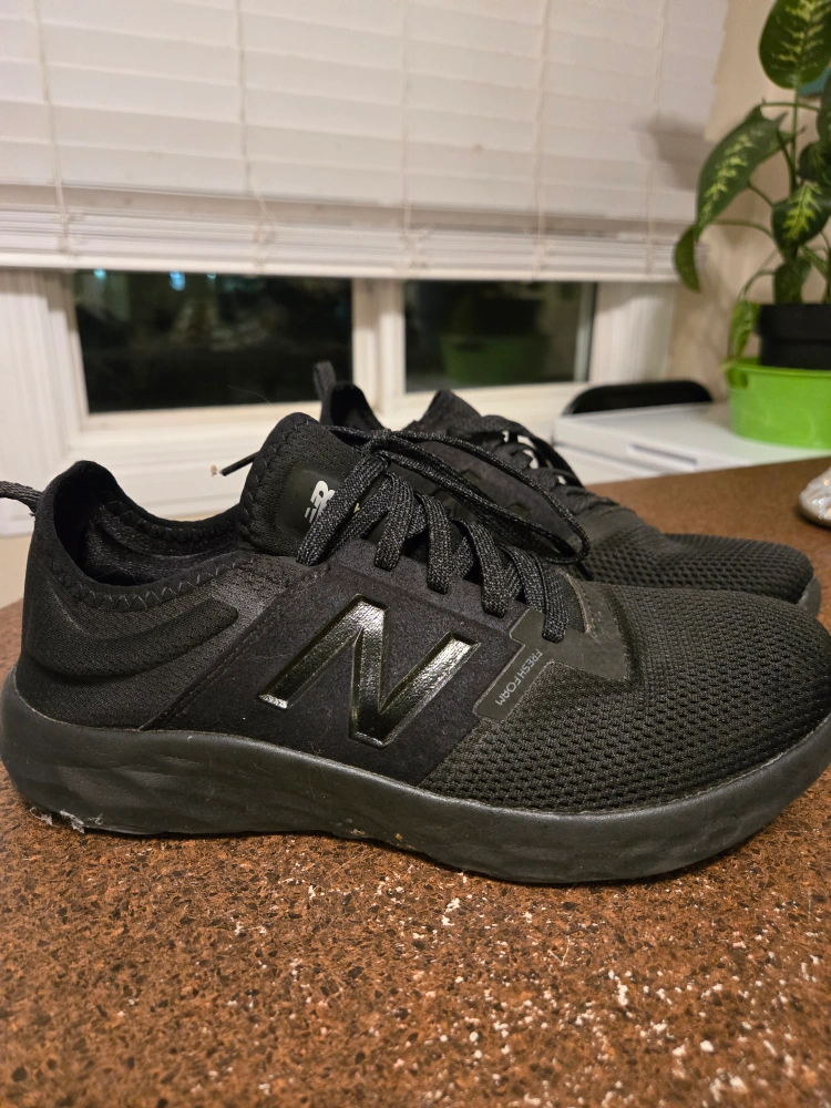 Selling a pair of New Balance Fresh Foam shoes in black. They show some signs of wear, as seen in the pictures, but still have lots of life left in them!