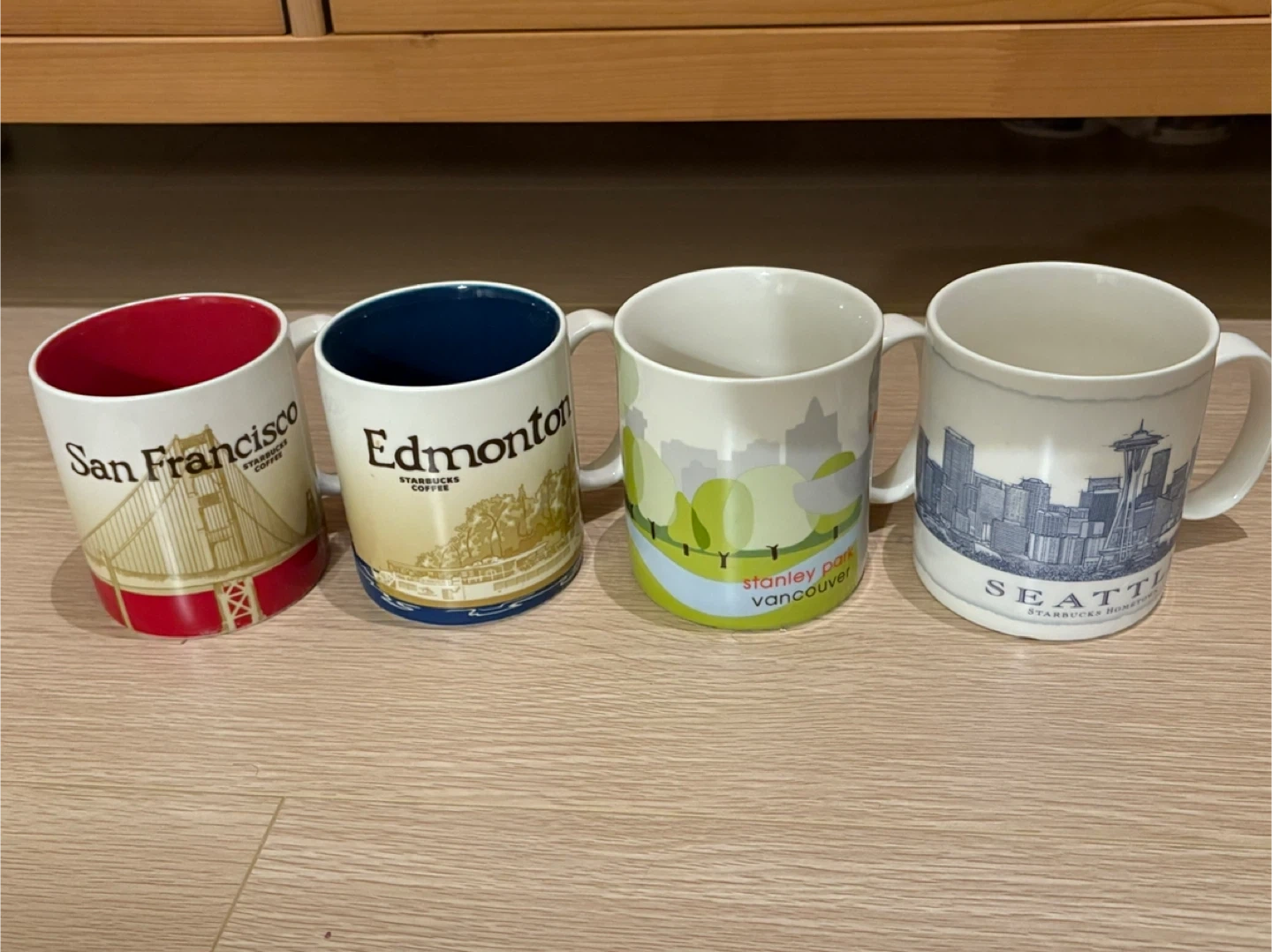 Selling a collection of Starbucks city mugs. Included are mugs from San Francisco, Edmonton, Seattle, Stanley Park Vancouver. All in excellent condition.