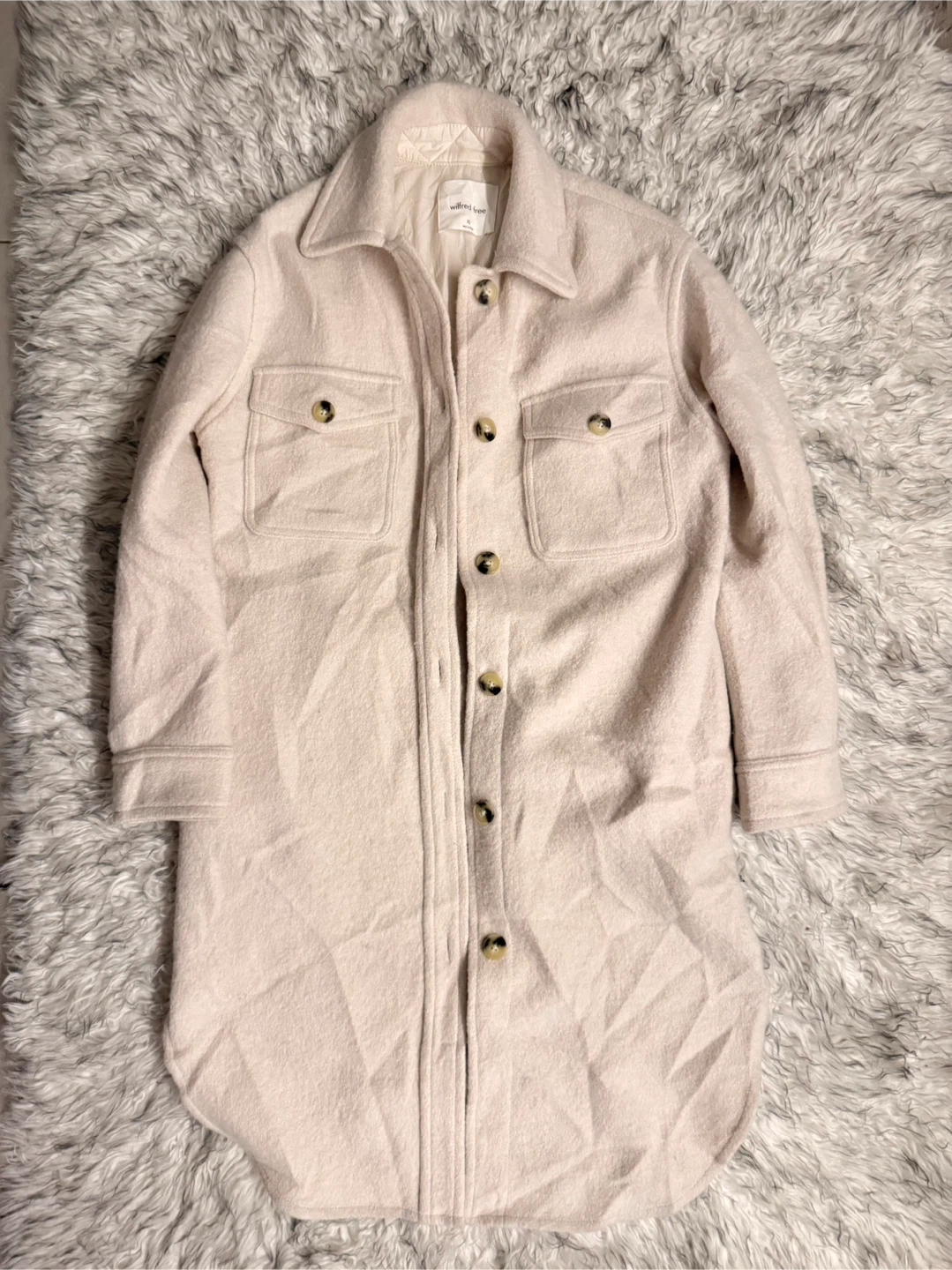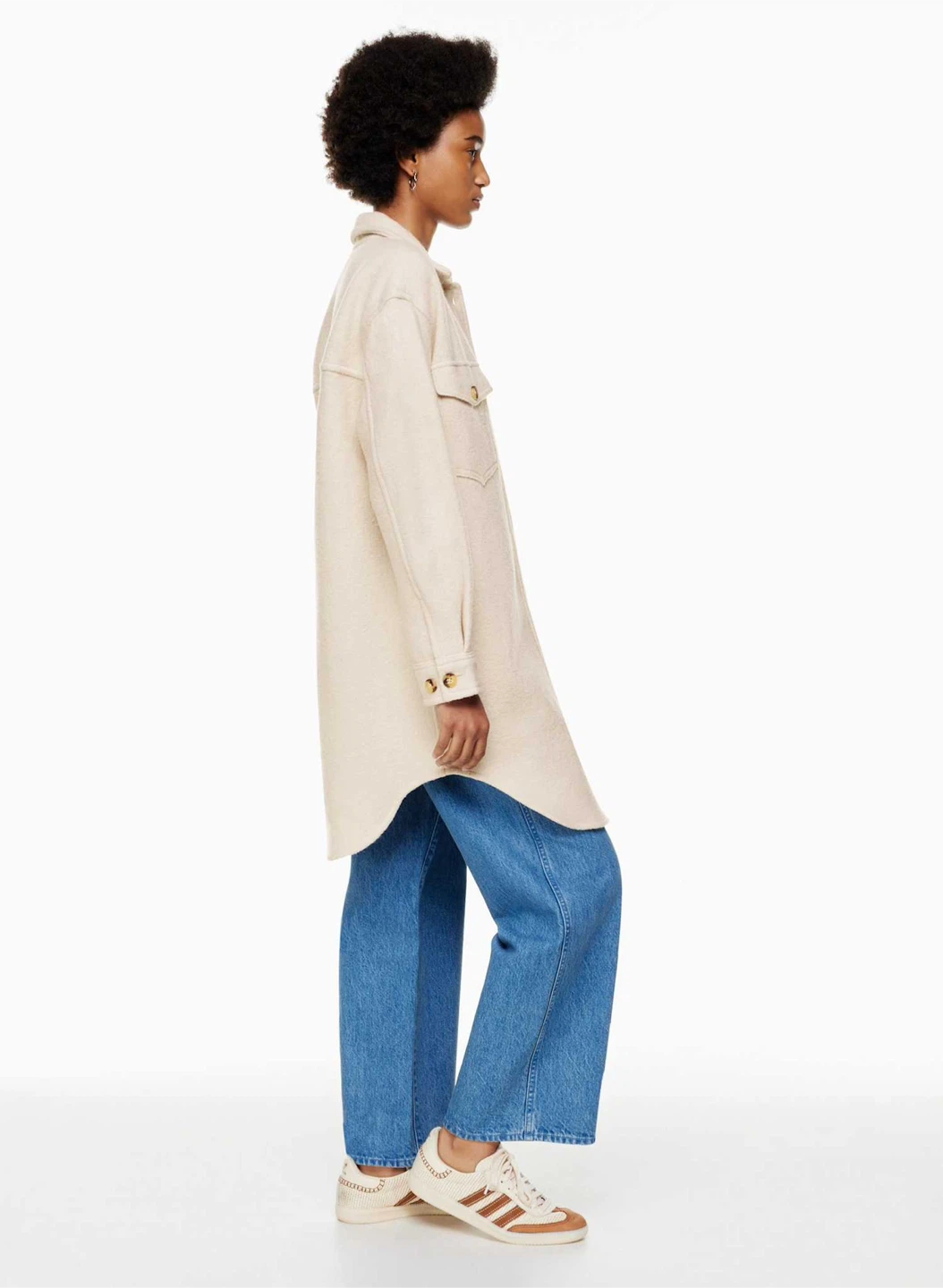 Keep your jacket on. Inside, outside — everywhere. A Wilfred Free classic beloved for its relaxed silhouette and all-season versatility, The Ganna™ delivers the relaxed silhouette of a shirt with the warmth of a jacket, transcending the typical rules of indoor/outdoor style. It's crafted with dropped shoulders, patch pockets and a rounded hem for throw-over-anything ease. This version has a longer inseam and is expertly tailored with boiled merino wool that's plush, dense and textural.