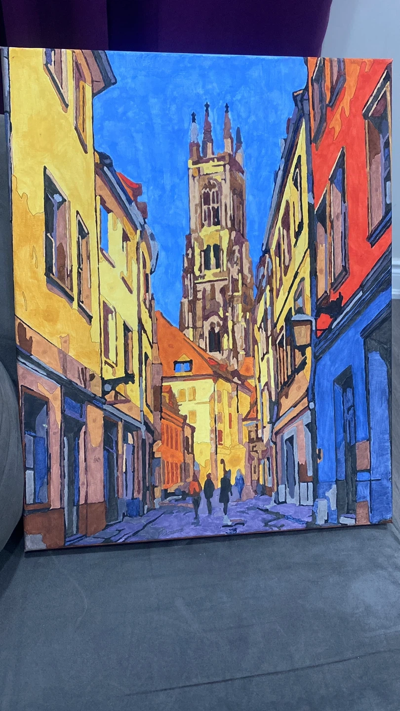 5This is a colourful painting of a street scene in Europe. It would look great in any room of your house!❤️