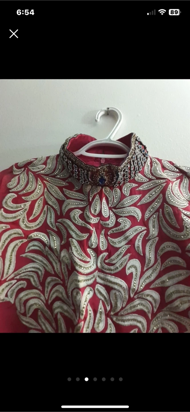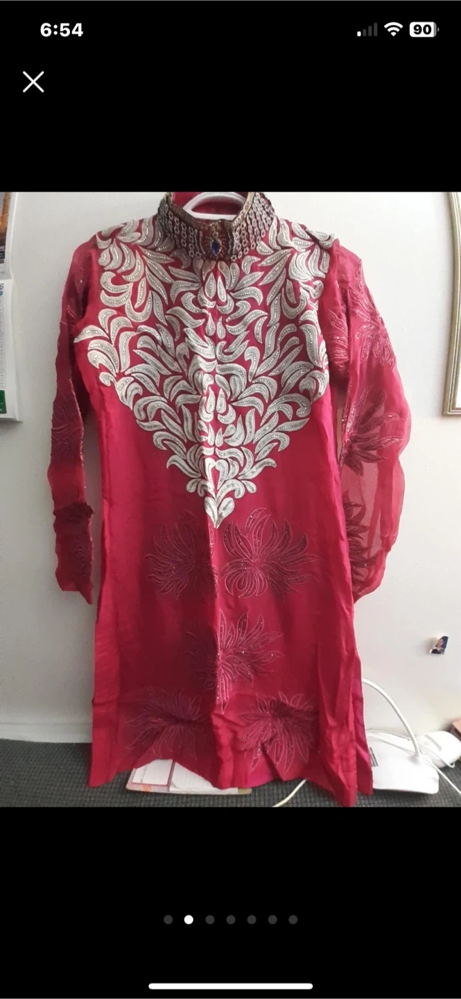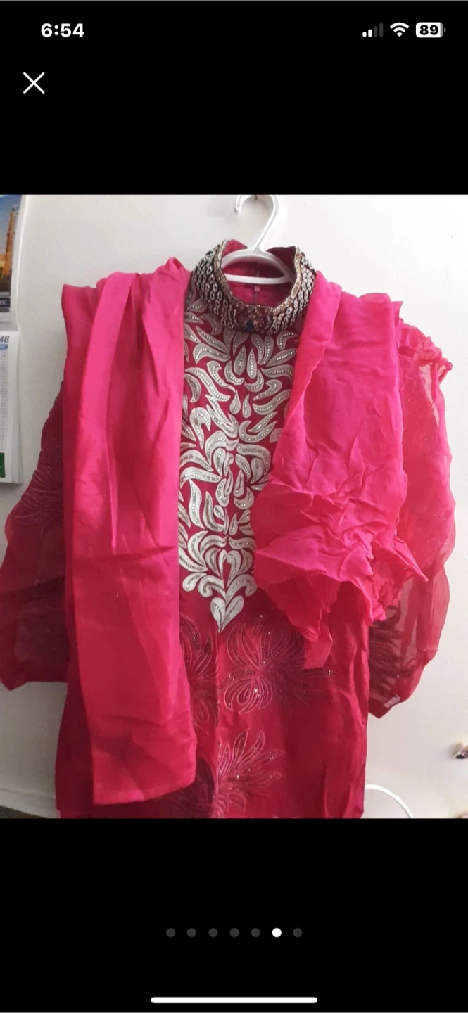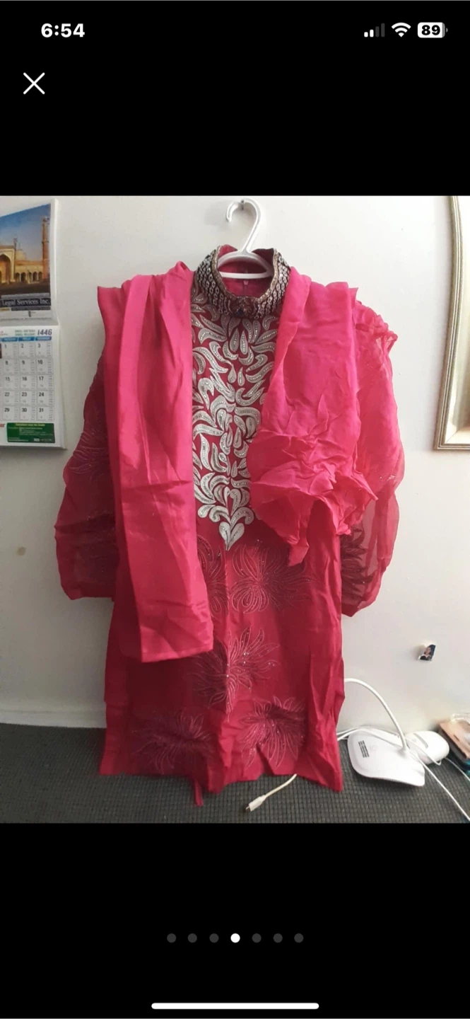 Selling a beautiful rose pink colour salwar kameez with intricate embroidery shifon material medium size $50 It comes with a matching dupatta. The dress is in good condition and perfect for special occasions! Parrots green colour with hot pink flowers embroidery long sleeve long gown brand new with tag free size long 54/55” dupian silk material $90 pick up at Markham and Lawrence no drop off check out my other listings please