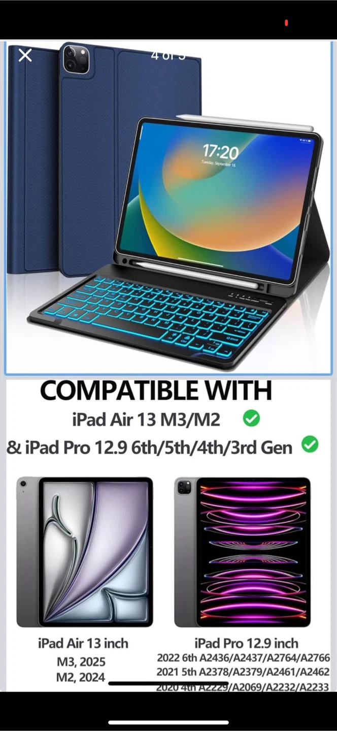 Looking to sell my ProCase keyboard case! It's compatible with iPad Air 13 M3/M2 and iPad Pro 12.9 6th/5th/4th/3rd Gen. It features a magnetic detachable keyboard and 7 colour backlights. It also has a built-in lithium-ion battery with long battery life and USB-C fast charging. Comes with the original box!