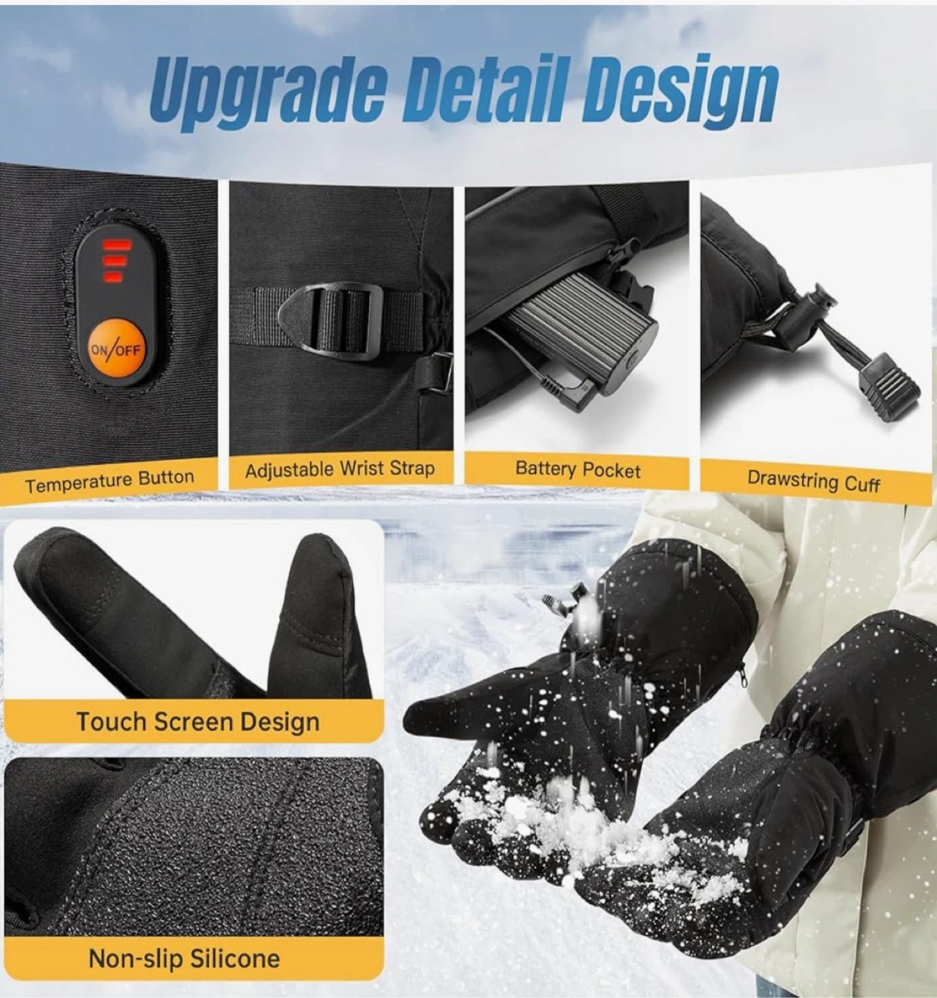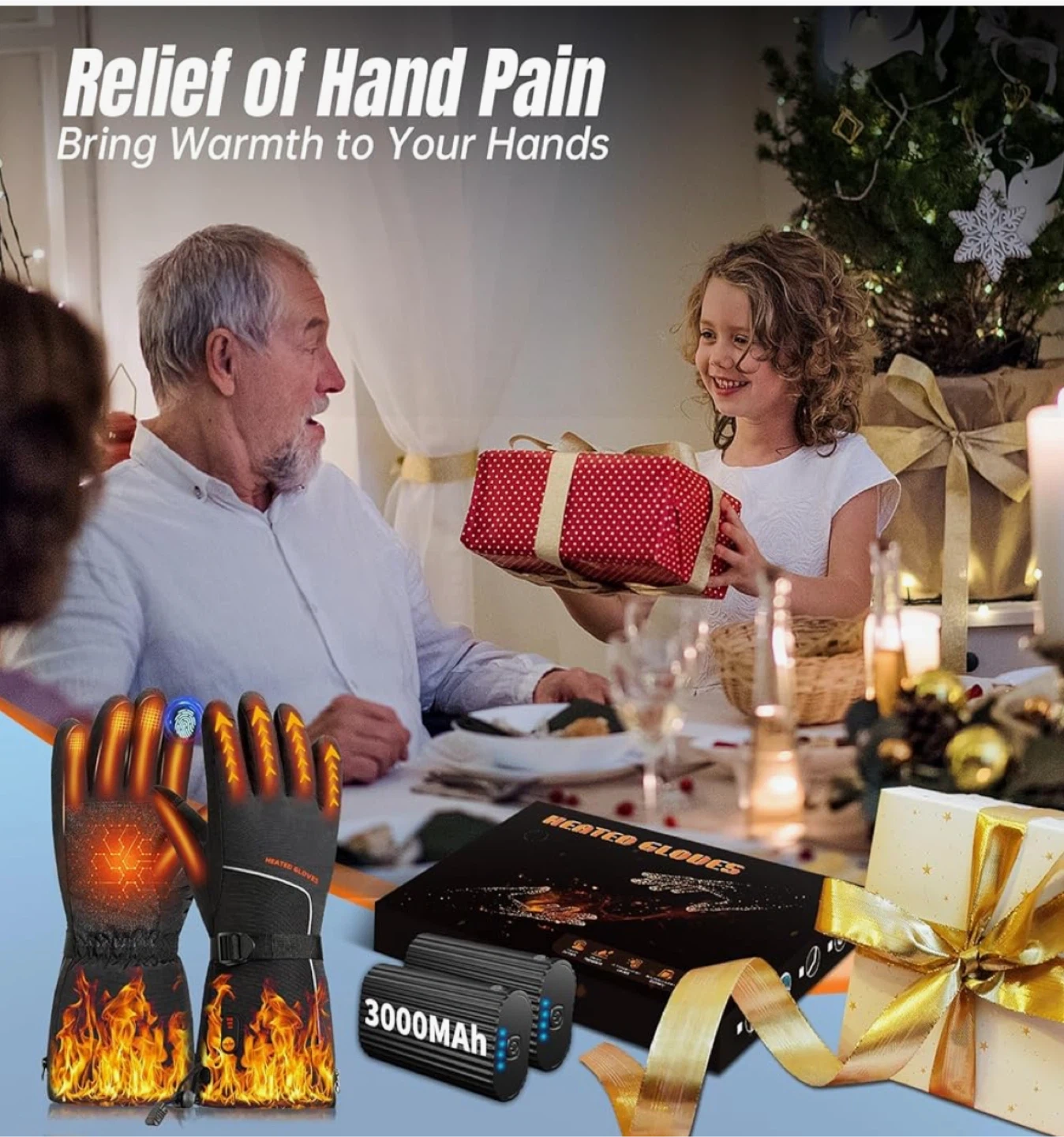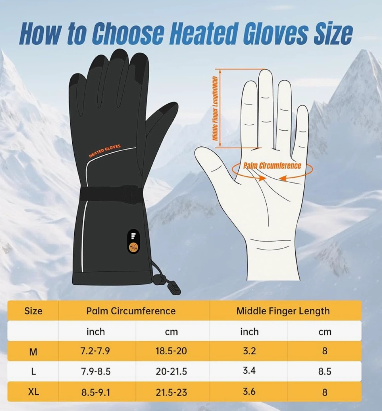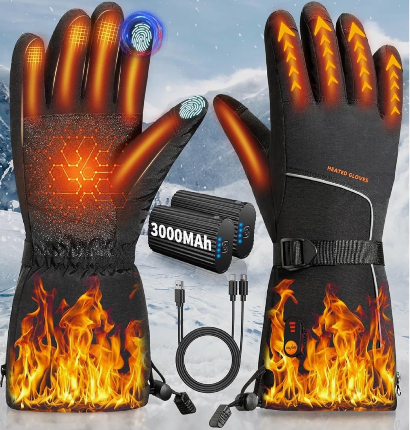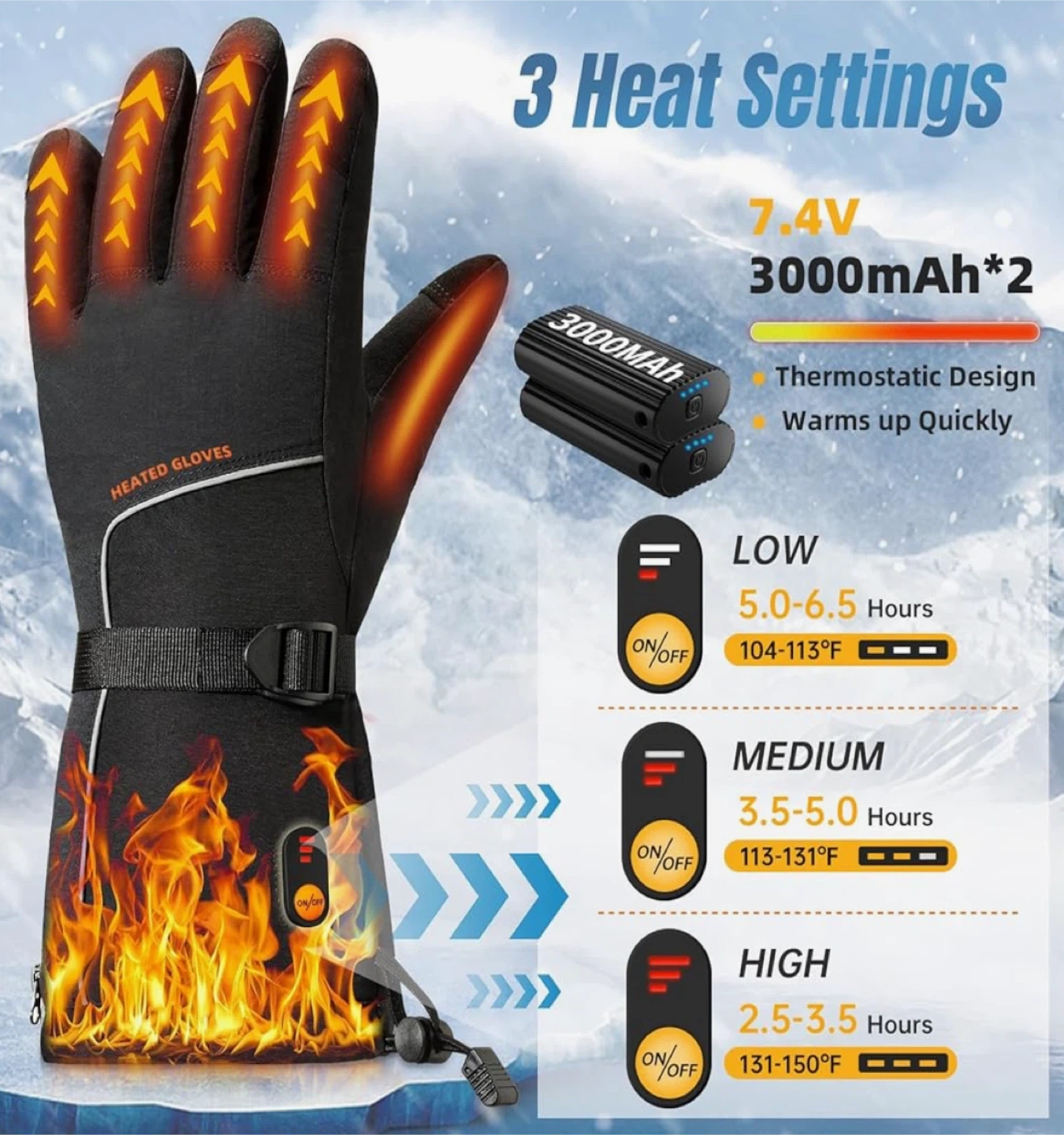 Heated Gloves for Men & Women – Stay warm all winter with high-capacity 7.4V 3000mAh batteries and 3 adjustable heat settings (104°F–150°F). These gloves heat up in just 30 seconds, warming your entire hand and fingers for 2.5–6.5 hours. The lambskin-polyester non-slip palm ensures a secure grip, even in wet conditions—perfect for skiing, hiking, or snow shoveling. Ideal for those with Raynaud’s, arthritis, or poor circulation. Includes 1 pair of gloves, 2 rechargeable batteries, USB charging cable, and user manual.