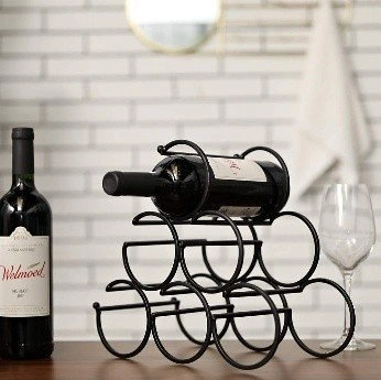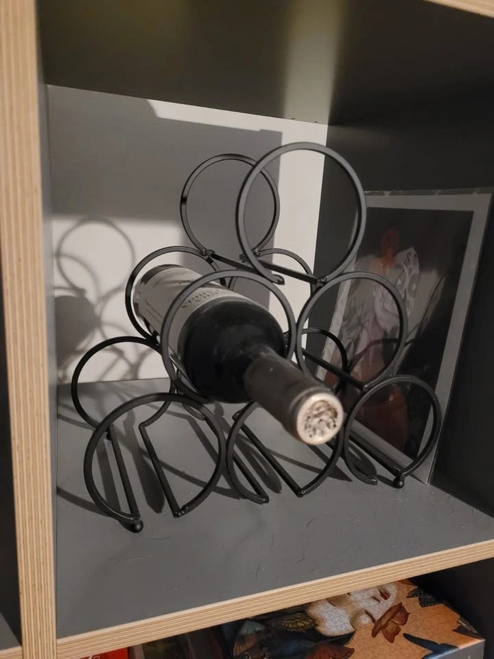 67JHY DESIGN Iron Tabletop Wine Rack 11.6x6.2x11inch Rustic Wine Bottle Rack Storage Wine Shelf Freestanding Wine Holder Portable Wine Cabinet Mini Bar for Home Counter Bar(6 Bottles Design Dia 3.5inch). For all wine and design lovers. Retail approx. 39.99+tax. Purchased new in October 2023.