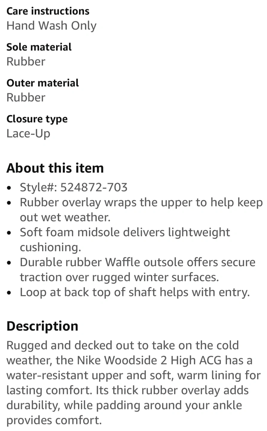 Nike Woodside 2 High ACG Boots-Size 6.5Y (Women’s 7.5)