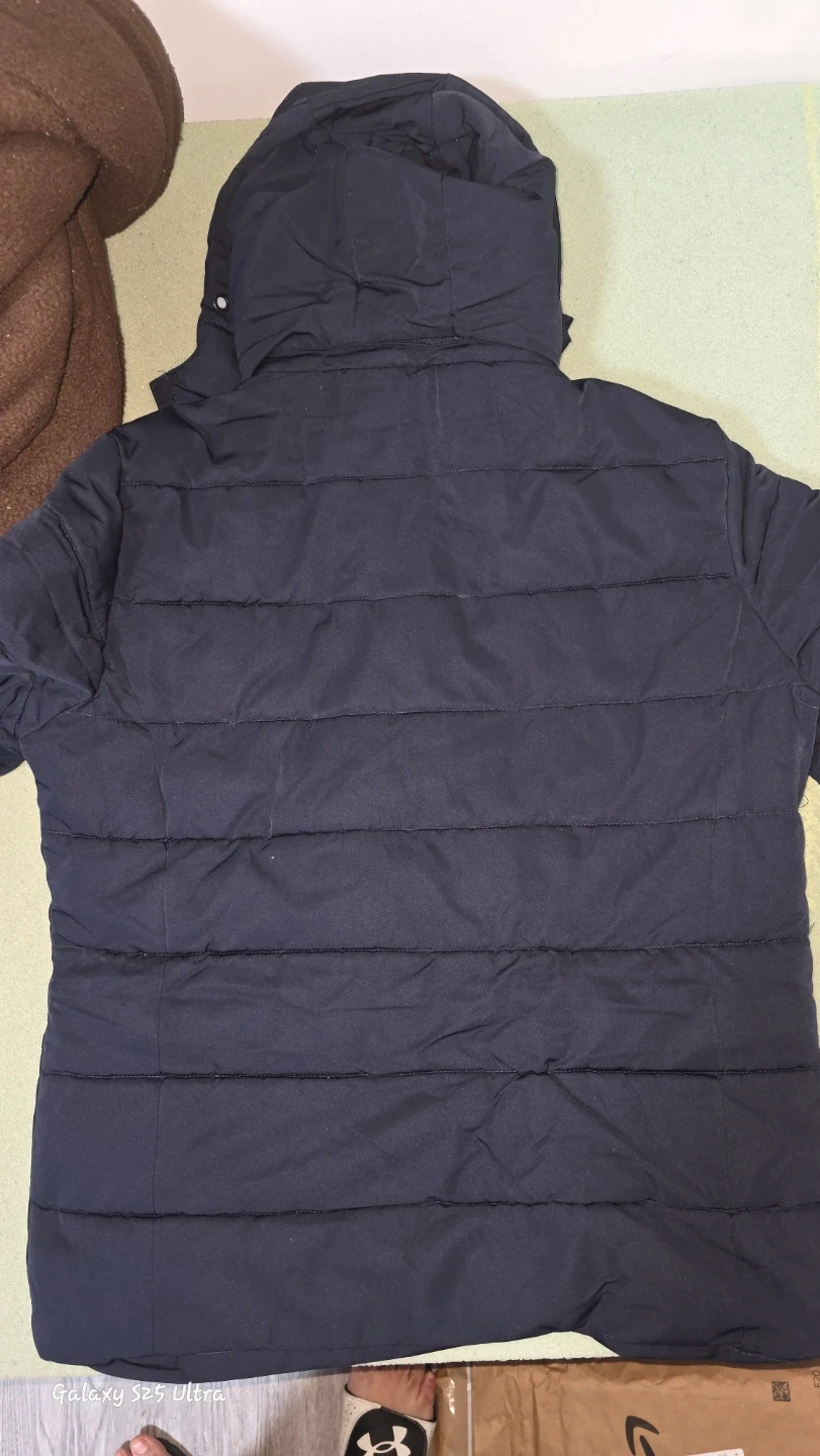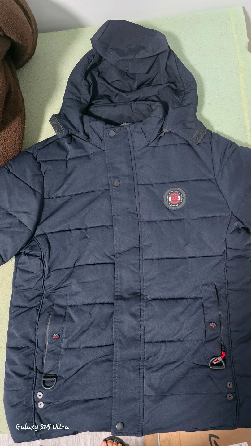 A warm and stylish navy blue padded winter jacket, perfect for the cold weather! It's in great condition and ready for a new home.