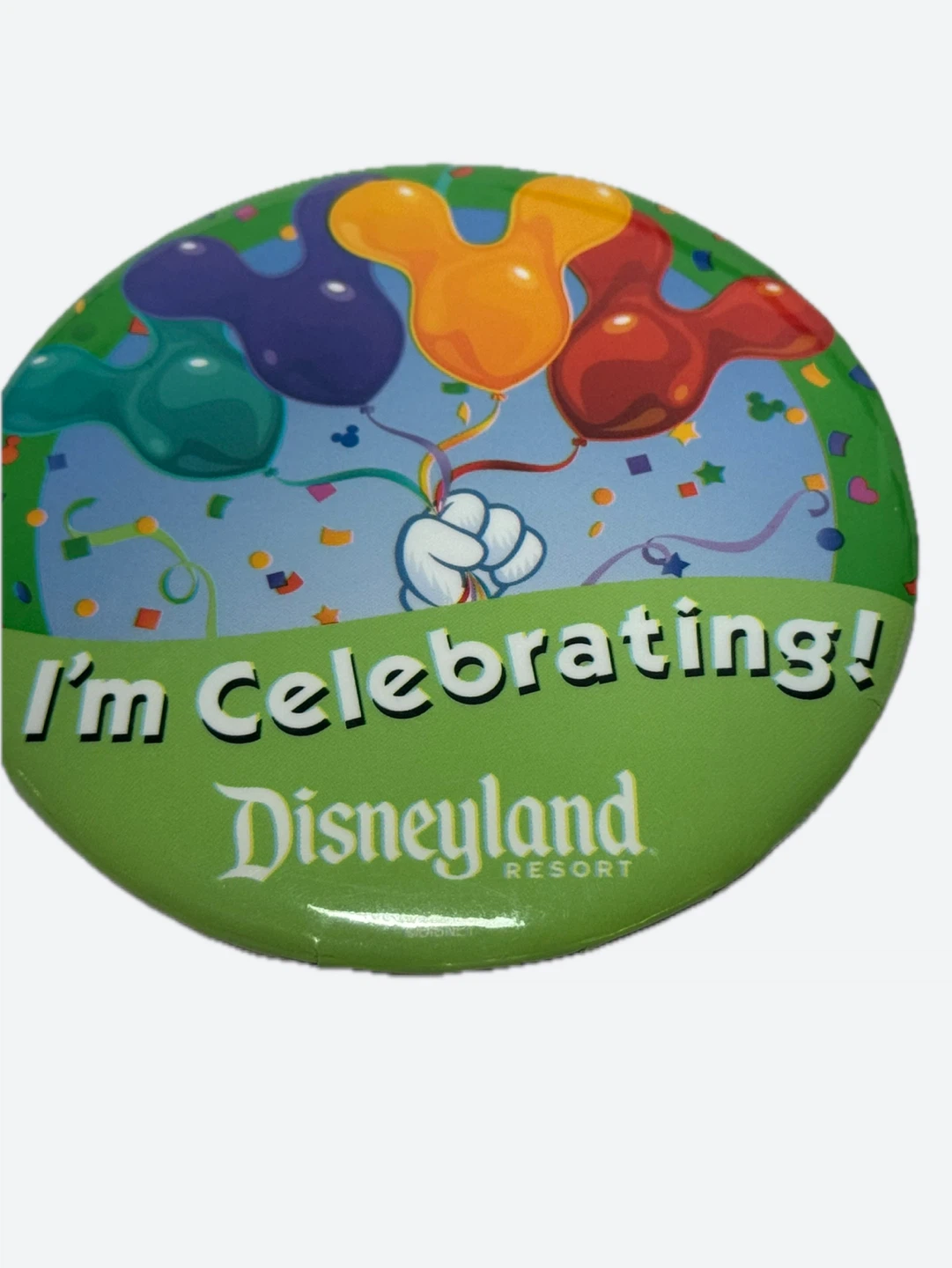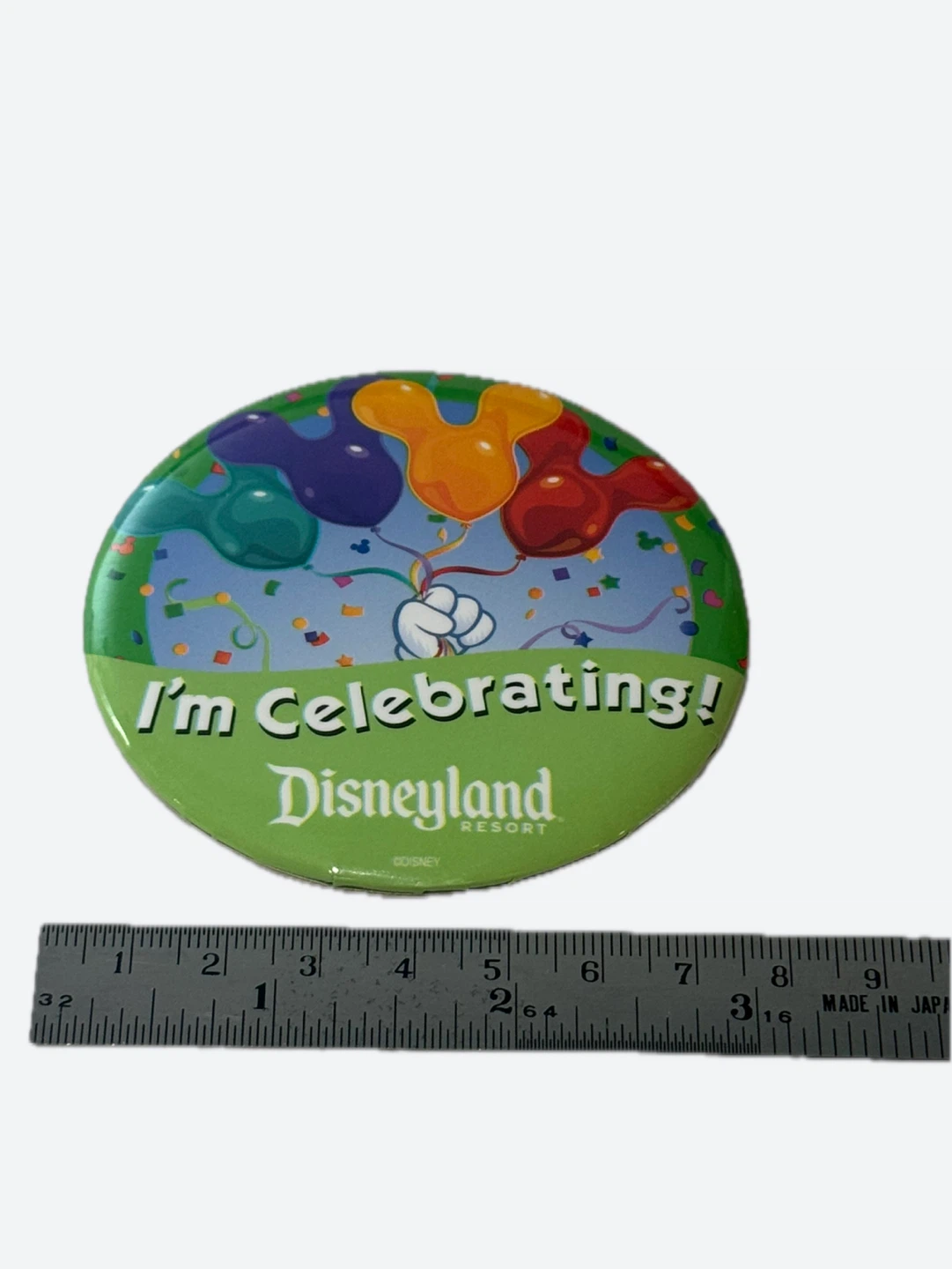 Two Disneyland buttons! One commemorates a first visit, and the other says "I'm Celebrating!"