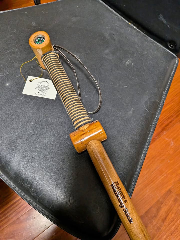🧠Wooden Walking Stick with Compass – Handcrafted – $60