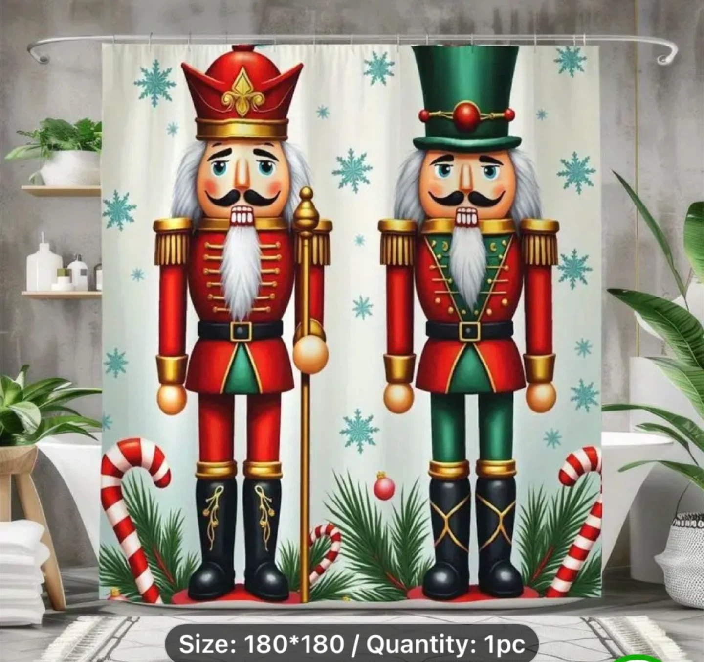 Spruce up your bathroom with this festive nutcracker-themed shower curtain! It measures 180x180cm and features a fun and colourful design. Perfect for adding a touch of holiday cheer to your home.
