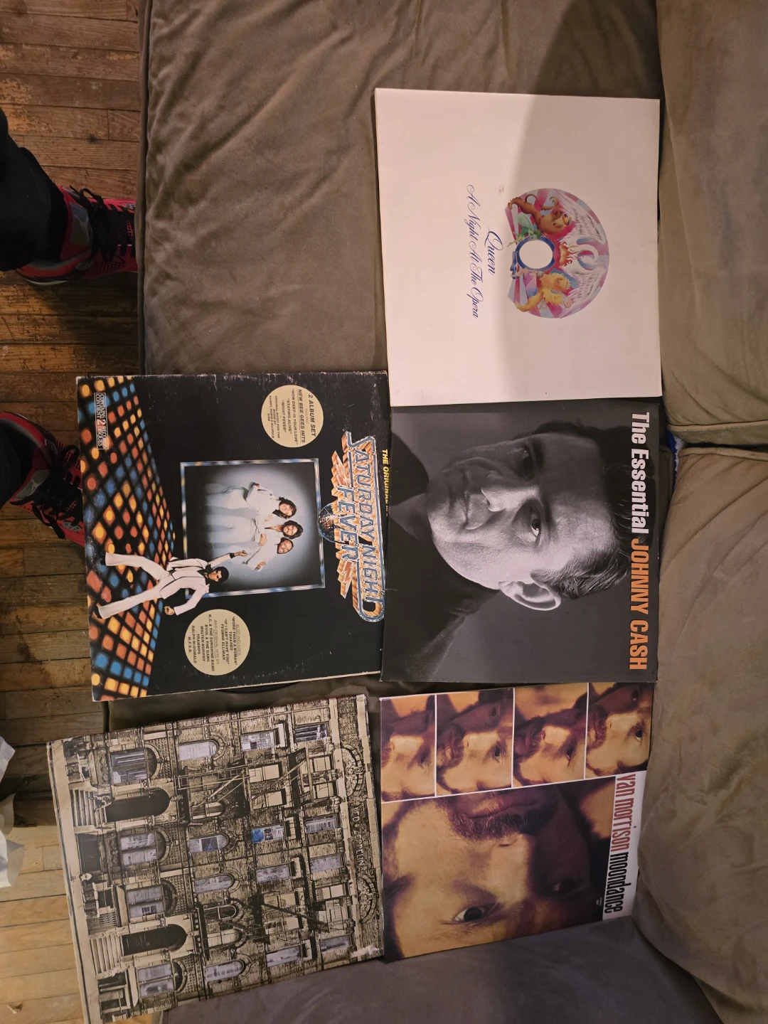 **** Johnny casssh and Saturday night fever sold**** ***Just added Frank Sinatra a Jolt Christmas***. Selling a collection of vinyl records! Includes: - Queen - A Night At The Opera - The Essential Johnny Cash- SOLD - Saturday Night Fever soundtrack - SOLD -Van Morrison Moondance -Led Zeppling houses of the holy double album 60.00 for all together. Hoping to sell as 4, I dont really want to sell individuals.