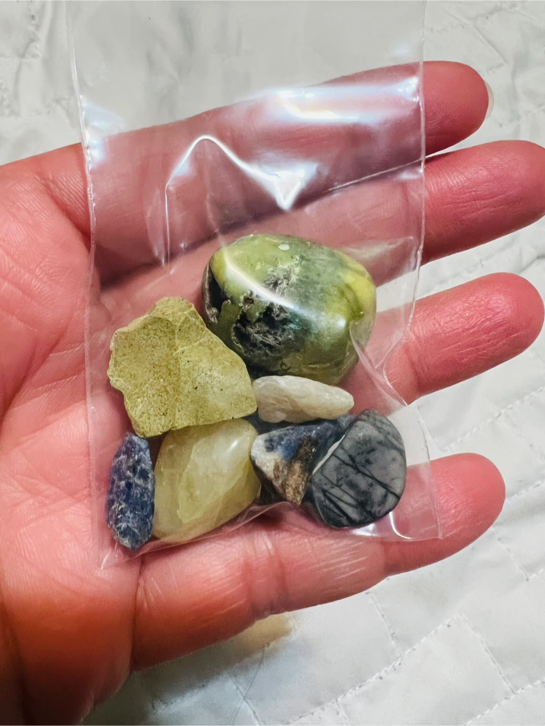 Here's a collection of tumbled stones in various colours and textures. They're perfect for crafts, decoration, or just adding to your collection!