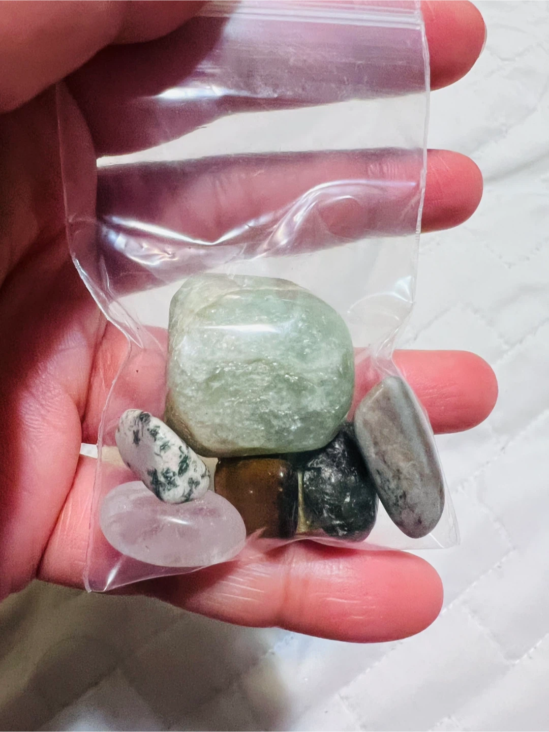A collection of tumbled gemstones in various colours and shapes, all in a handy little bag! Perfect for crafts, decoration, or just collecting