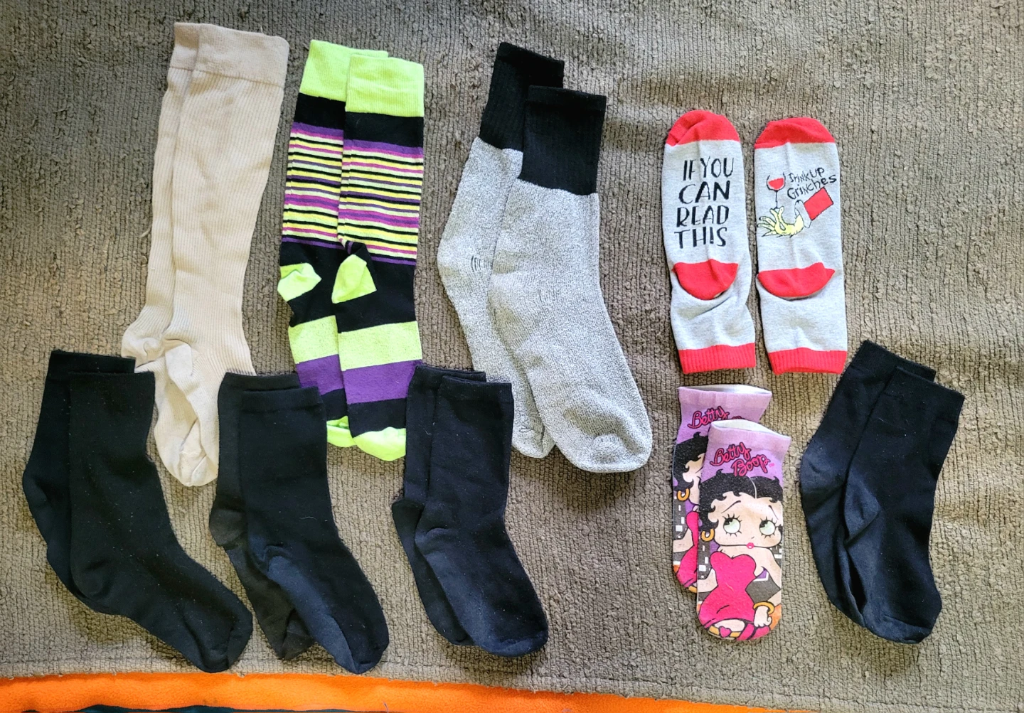 Selling a variety pack of socks! There are different colours and styles, including some fun novelty socks. All in good condition and ready for a new home!