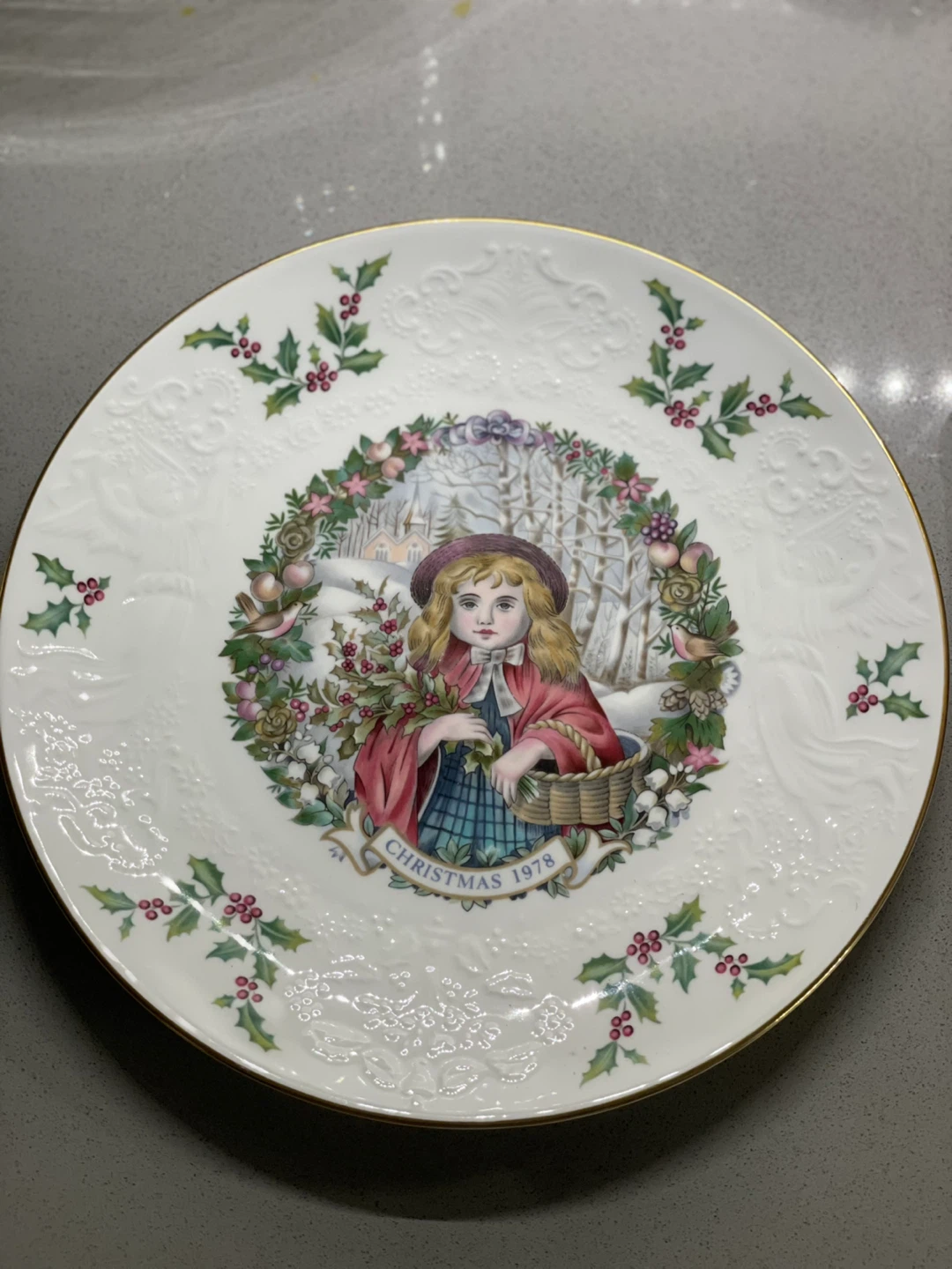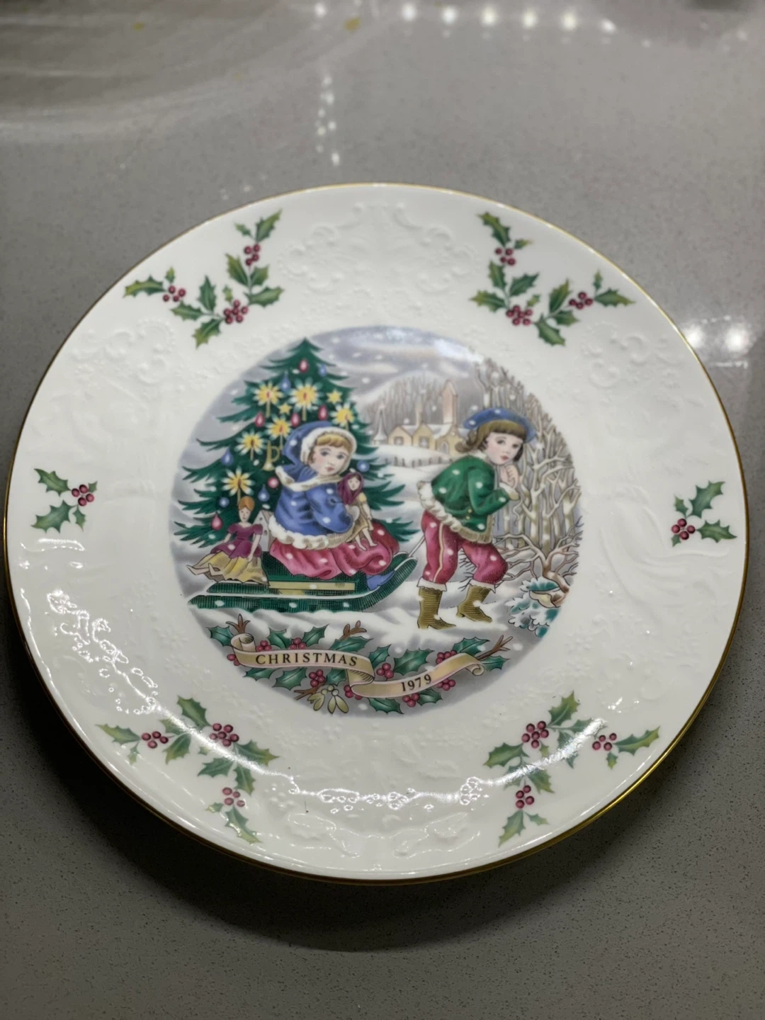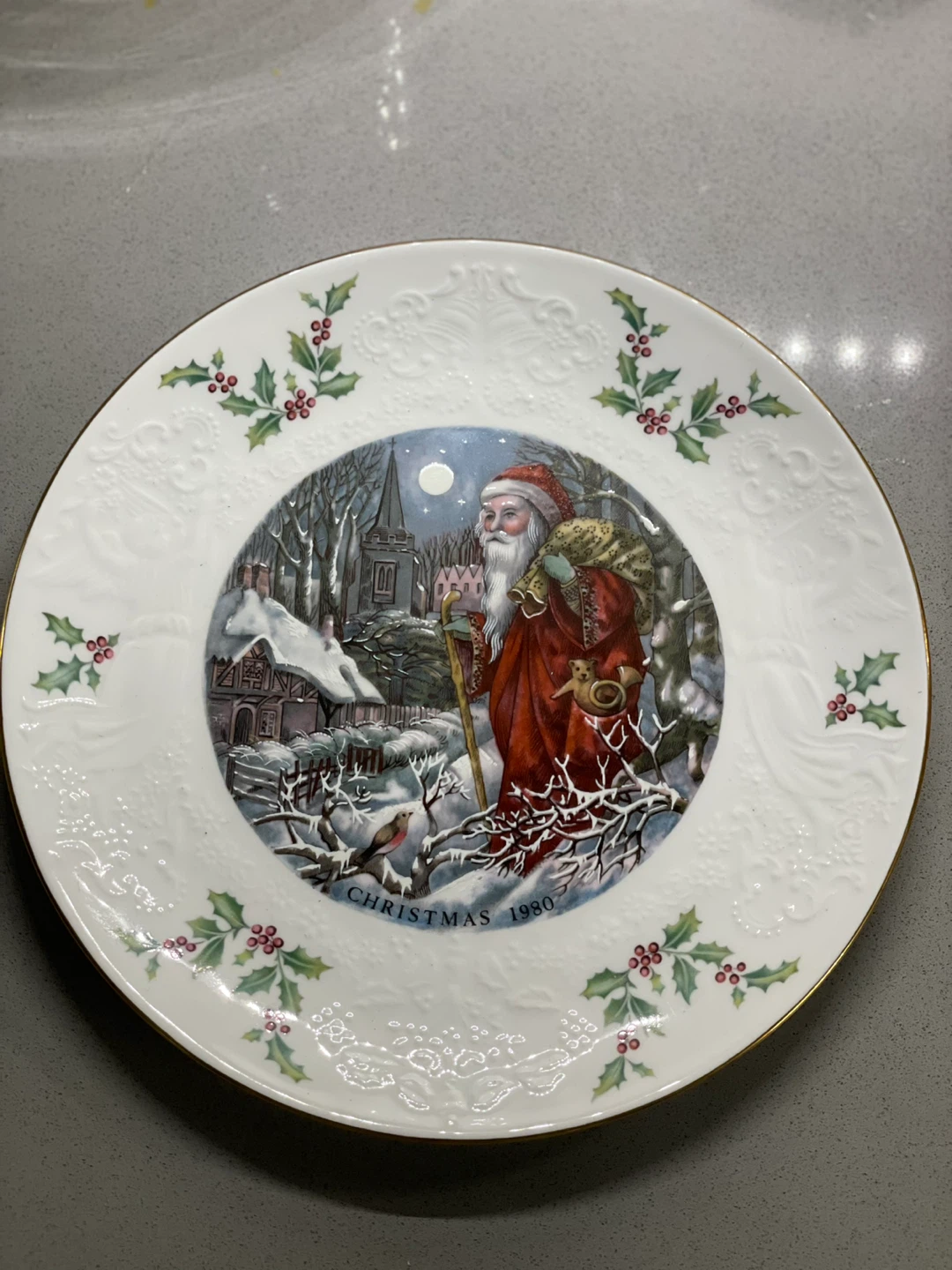 Selling a set of vintage Christmas collector plates. Each plate features a unique festive scene and is dated from the years 1977 to 1982