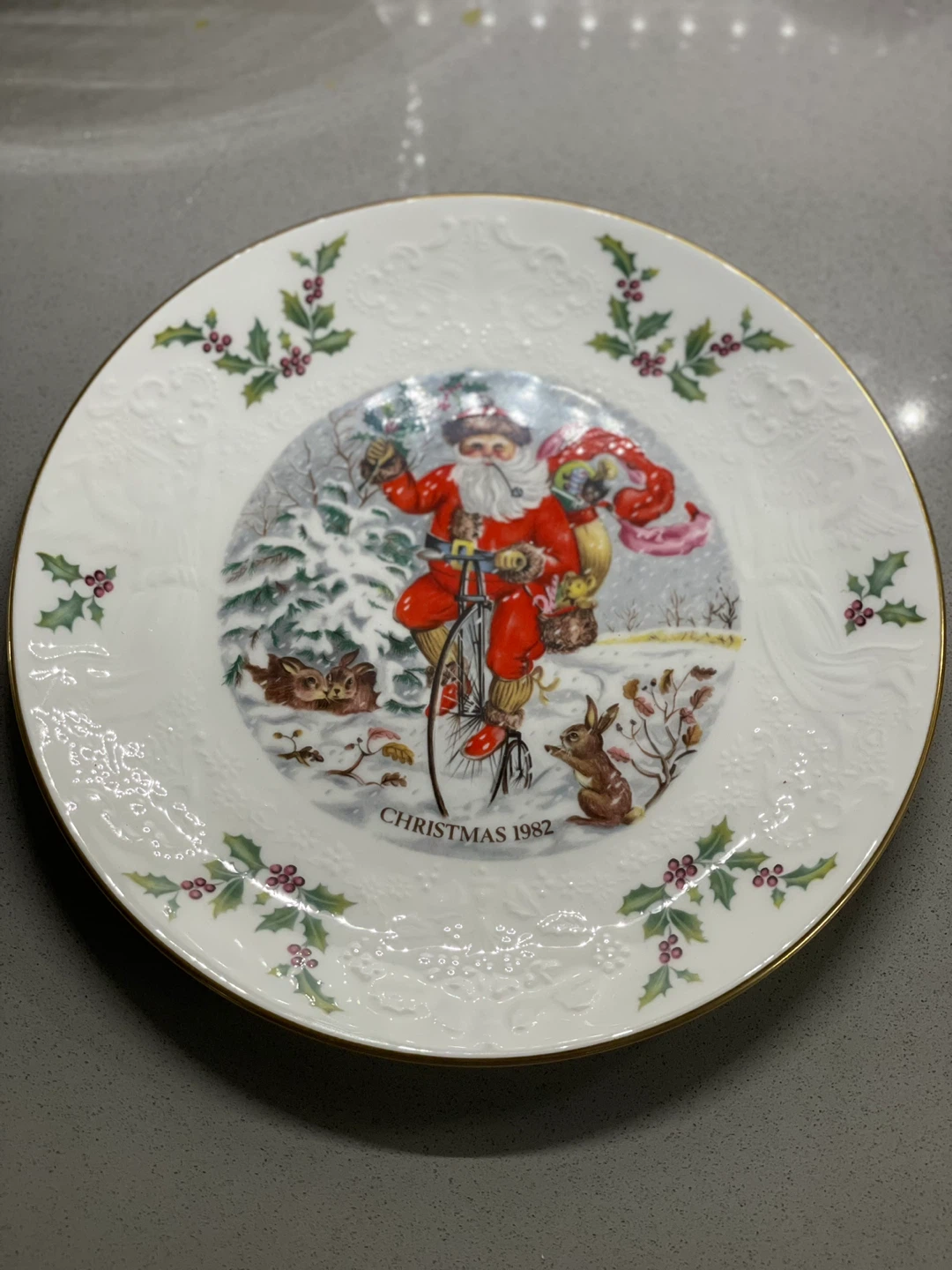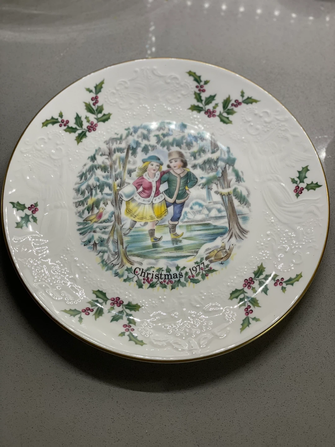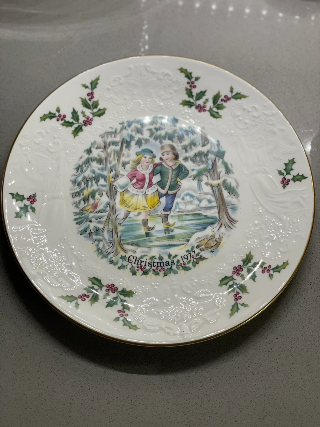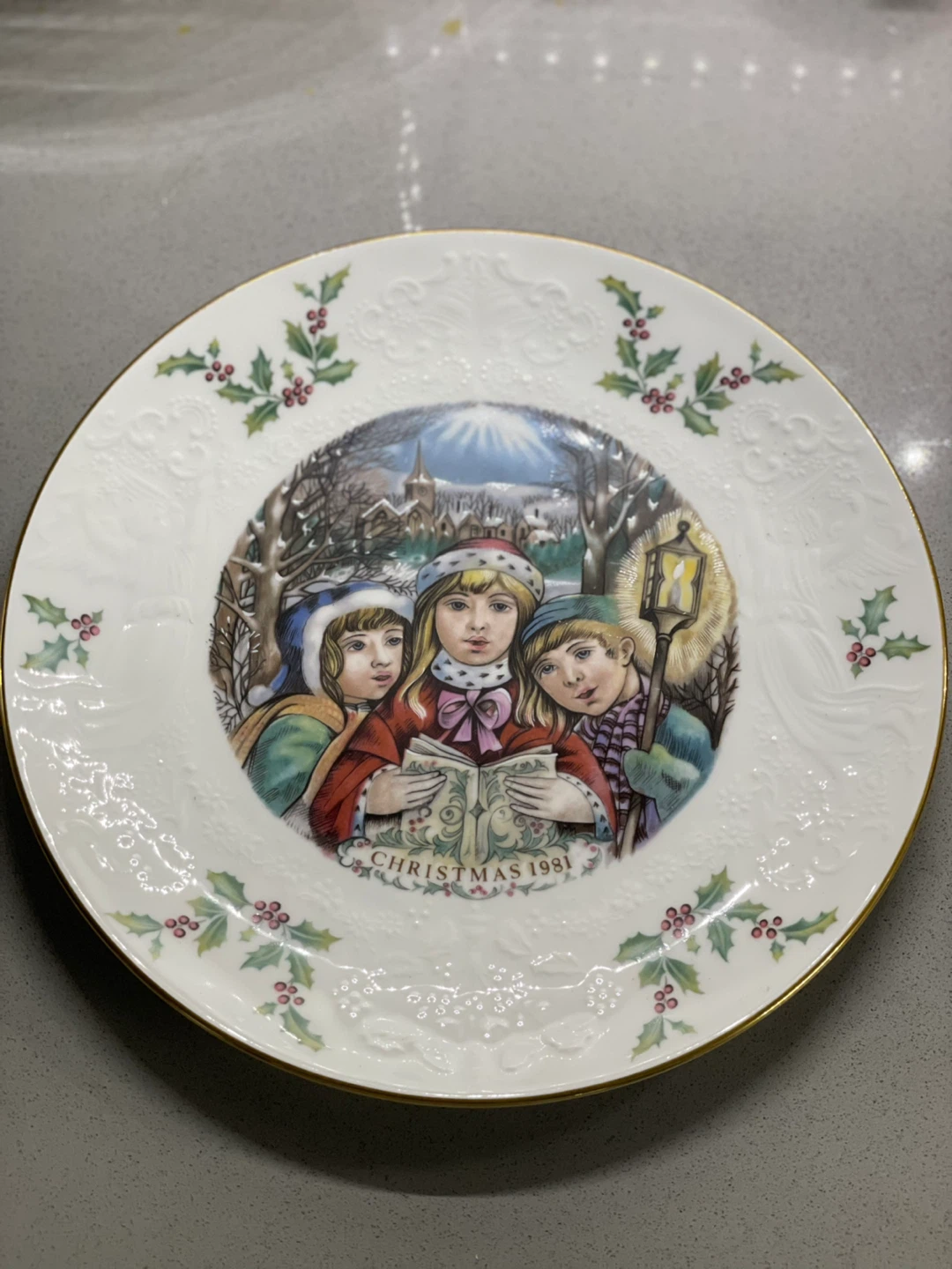 Selling a set of vintage Christmas collector plates. Each plate features a unique festive scene and is dated from the years 1977 to 1982