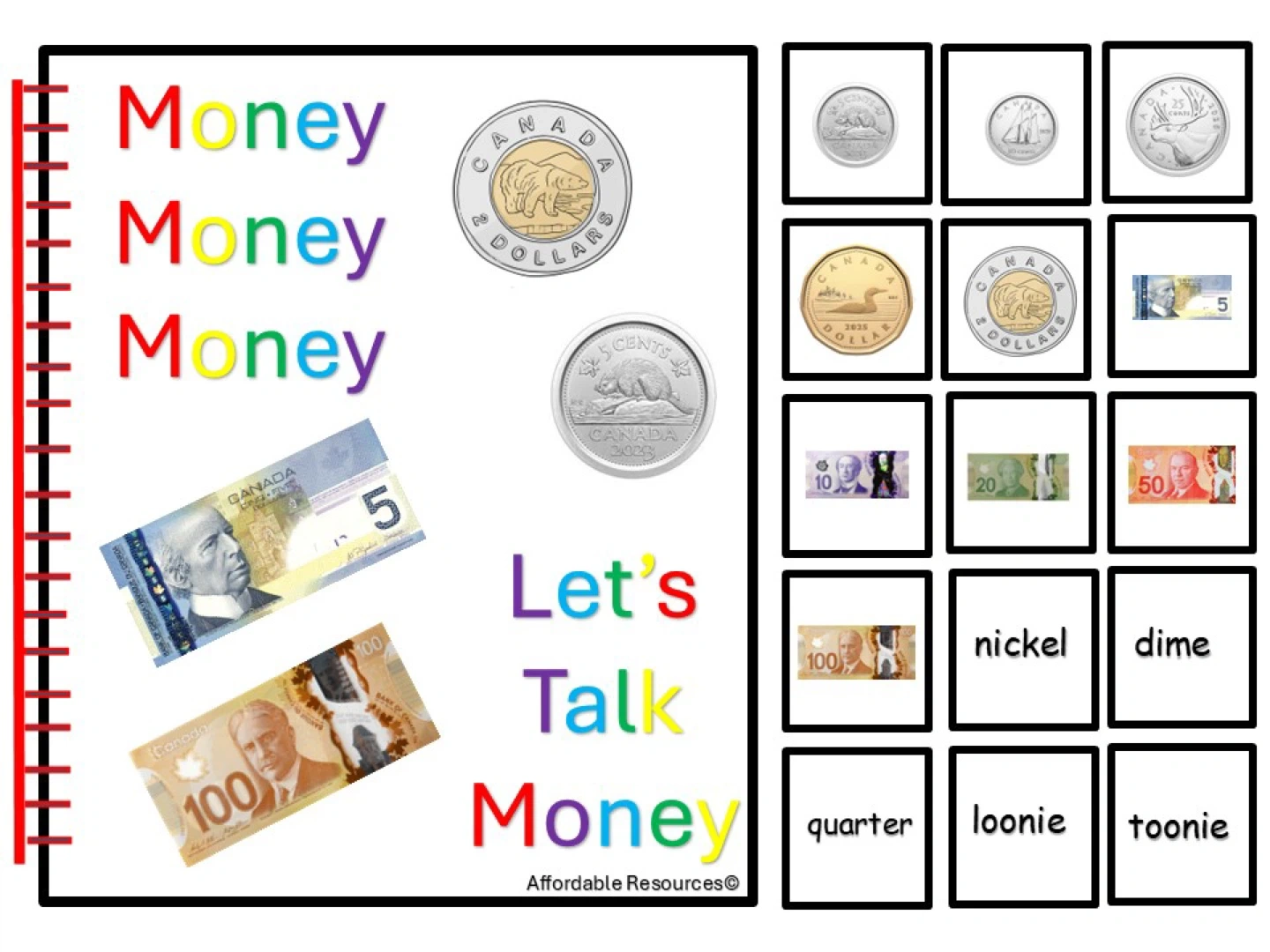 124Adaptive Velcro Story for children that are non-verbal/autistic to open the world of communication and learning. This story is called Money, Money, Money. And it takes your child on a learning journey about money. It introduces child to coins and dollar bills. Child will learn to identify the coin, bill and work towards identifying the spelling and the math equation. 3 ways to order: 1-PDF file $5.00 print yourself and put together 2-pick up book made $12.00 3-book $12.00+shipping Message if interested in purchasing. Check out my other listings. Or visit my Facebook page called Affordable Teaching Resources.