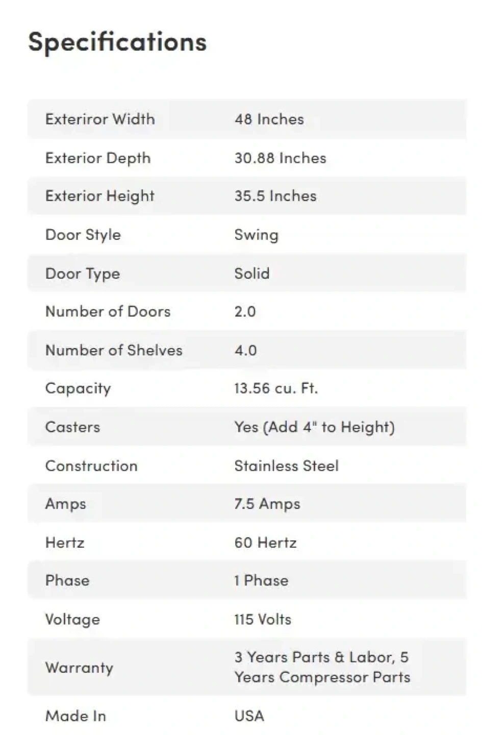 - Exterior Width: 48 Inches