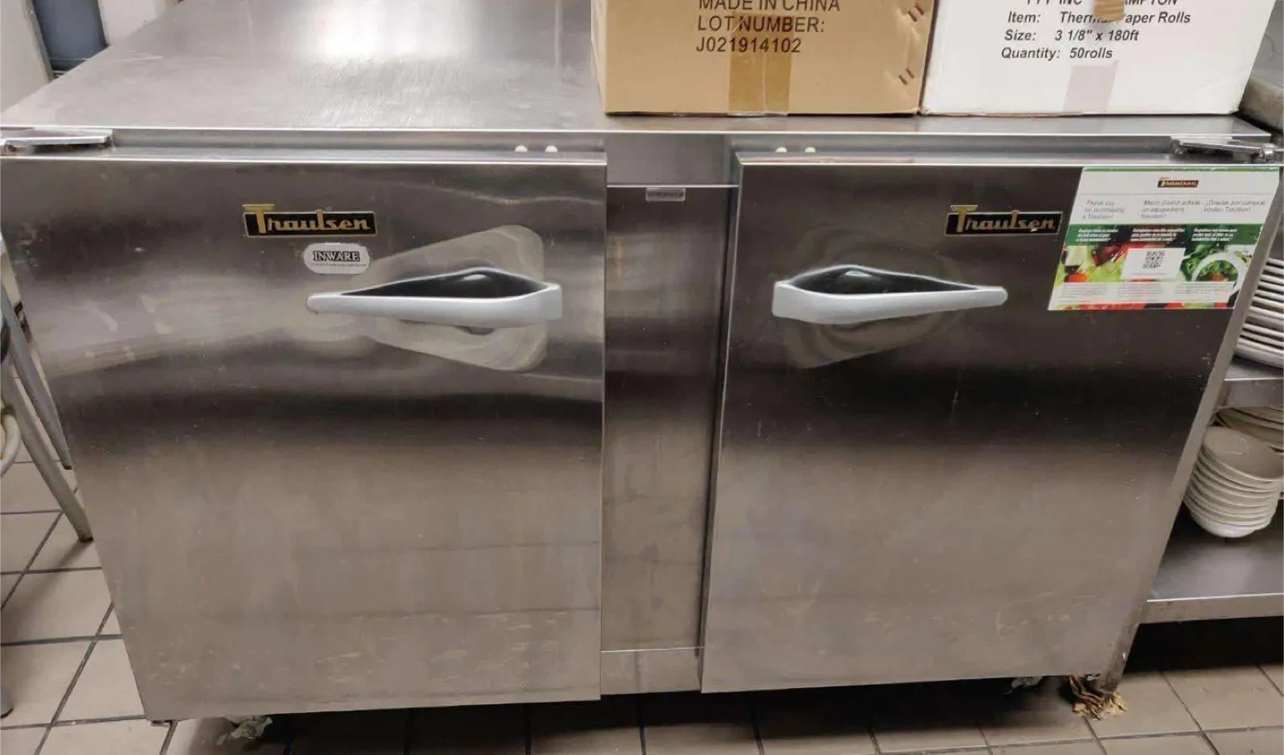 Selling a Traulsen 48" Undercounter Refrigerator with 2 Solid Doors. It's a commercial-grade unit perfect for restaurants or food businesses.