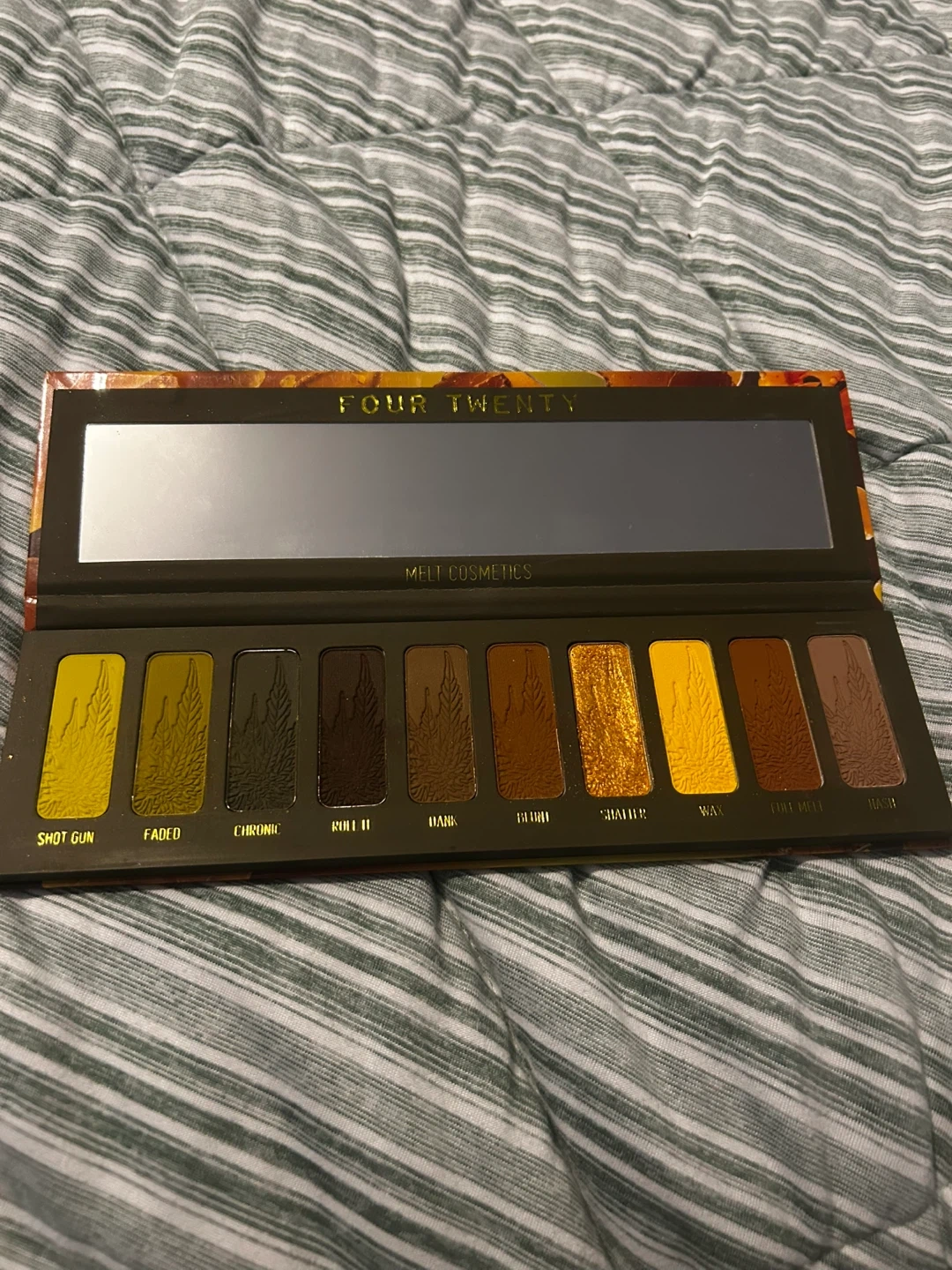 Selling a Gently used Melt Cosmetics eyeshadow palette called Four Twenty! It features a range of warm-toned shades perfect for creating a variety of looks. The palette includes a mix of matte and shimmer finishes