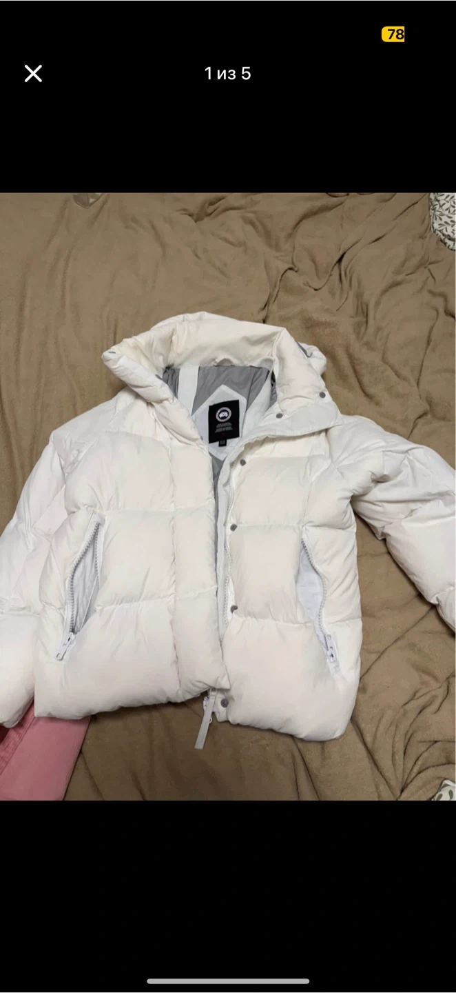 Here's a stylish Canada Goose puffer jacket in white! It's a great piece to keep you warm and fashionable during the colder months. Check out the photos for details!
