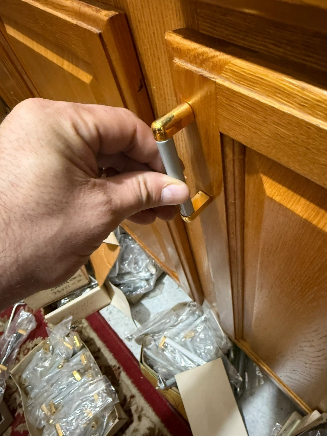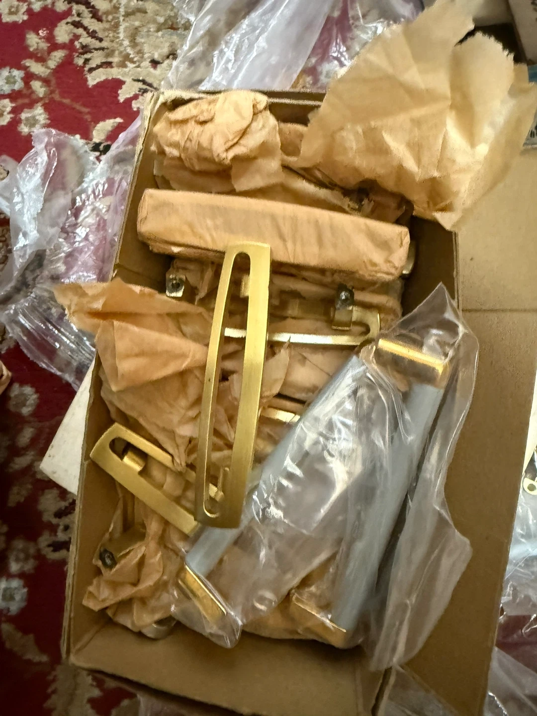 Selling a collection of cabinet and drawer pulls. They feature a mix of gold and silver finishes. Each pull is individually wrapped and comes with its own set of screws. Great for updating your kitchen or bathroom cabinets!
