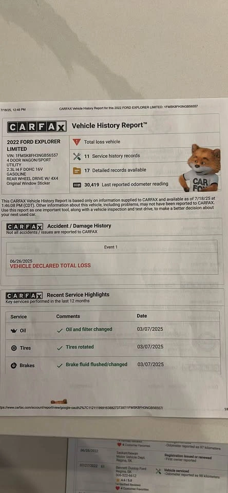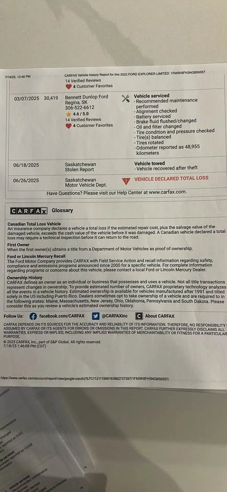 Vehicle was purchased from SGI; it was stolen and recovered.