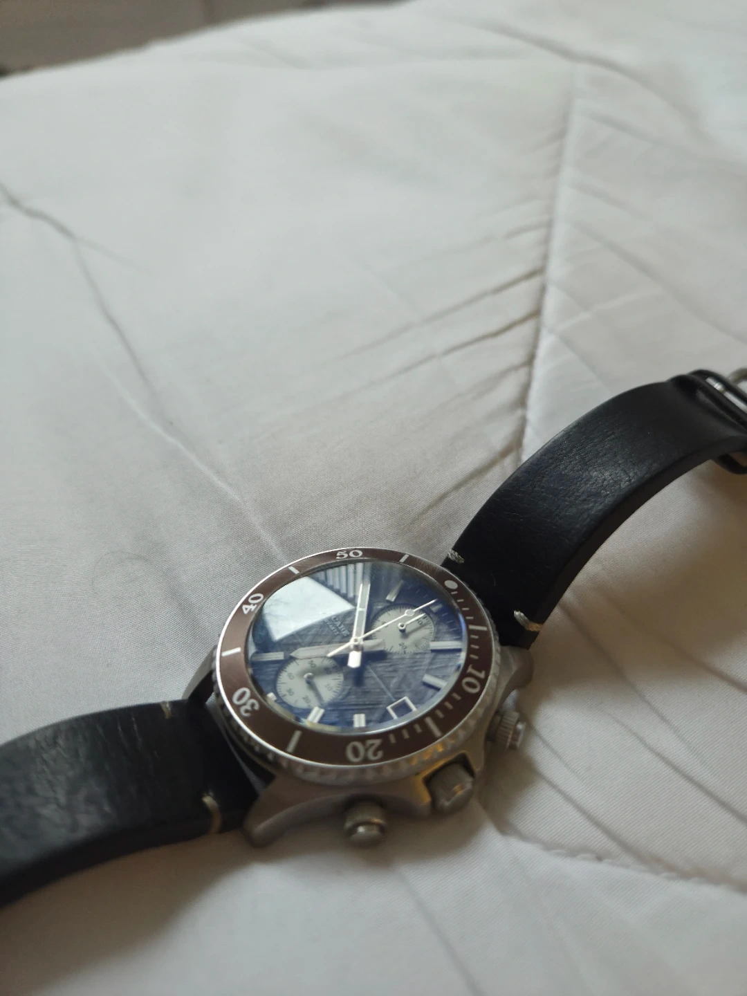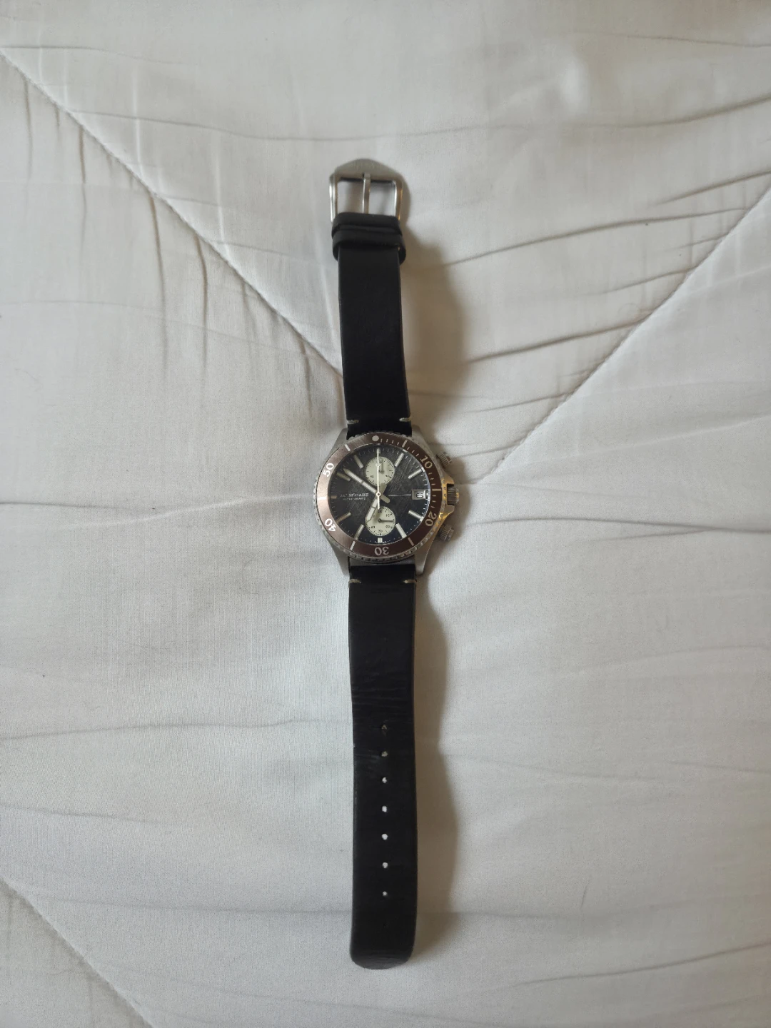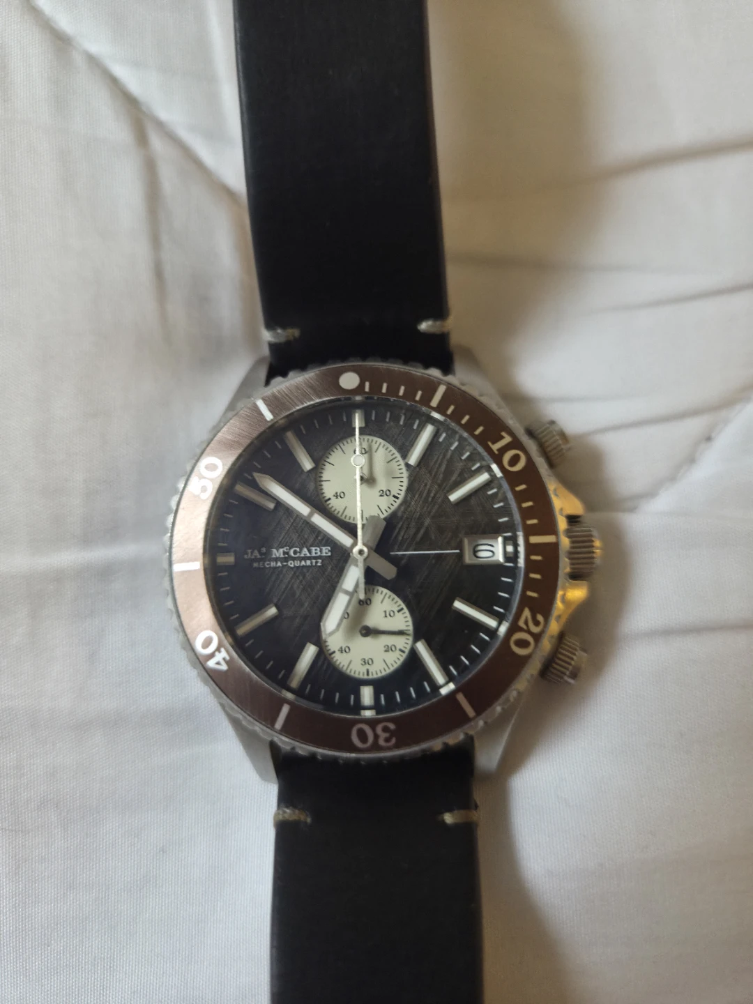 Selling a Ja' McCabe Accra Quartz watch. It features a black leather strap and a chronograph dial. The watch is in great condition and ready for a new owner!